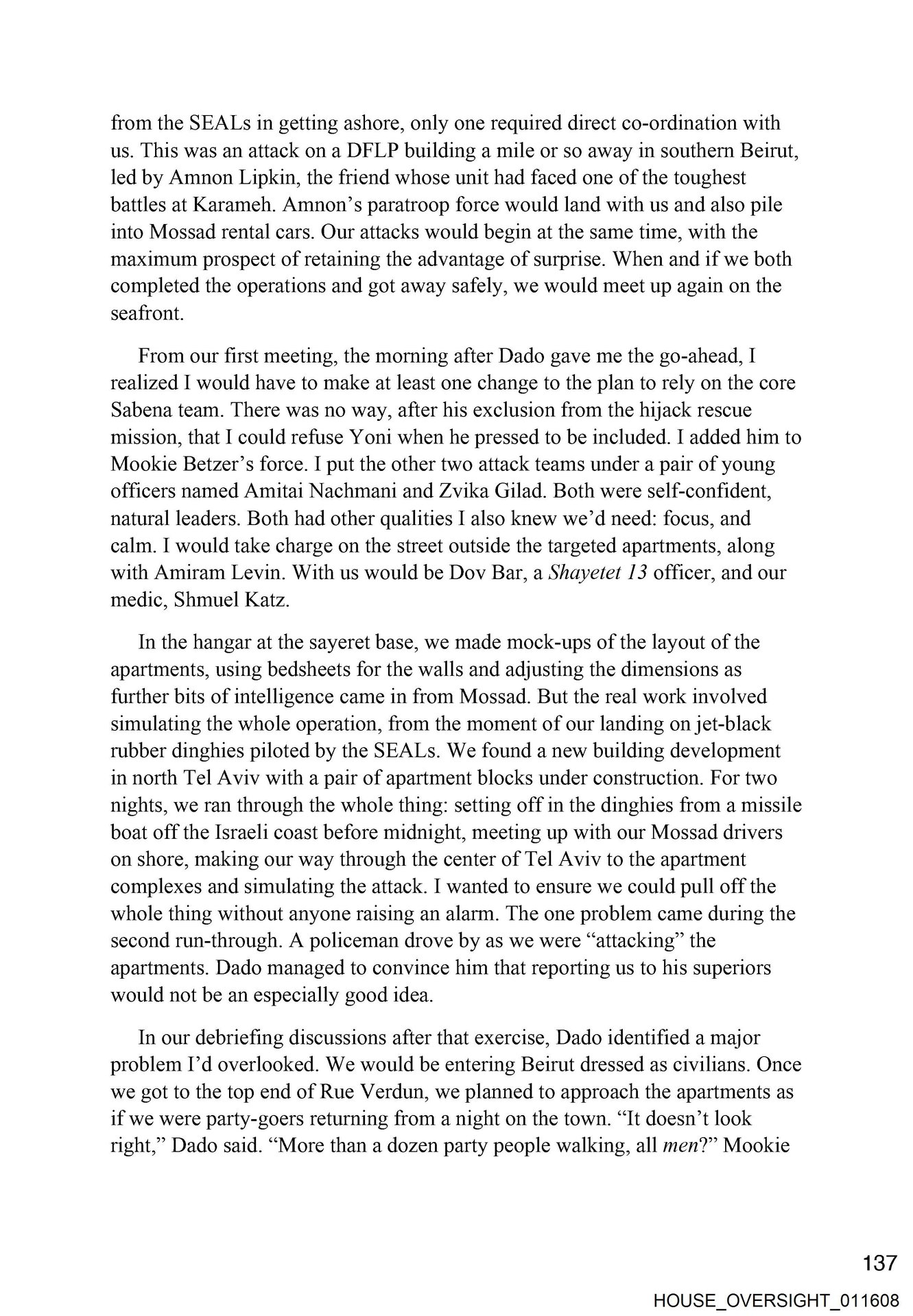 - HOUSE_OVERSIGHT_011593… mechanics’ overalls, and swap the sayeret’s paratroop-style red boots for black ones. I directed all the men to conceal the Berettas …