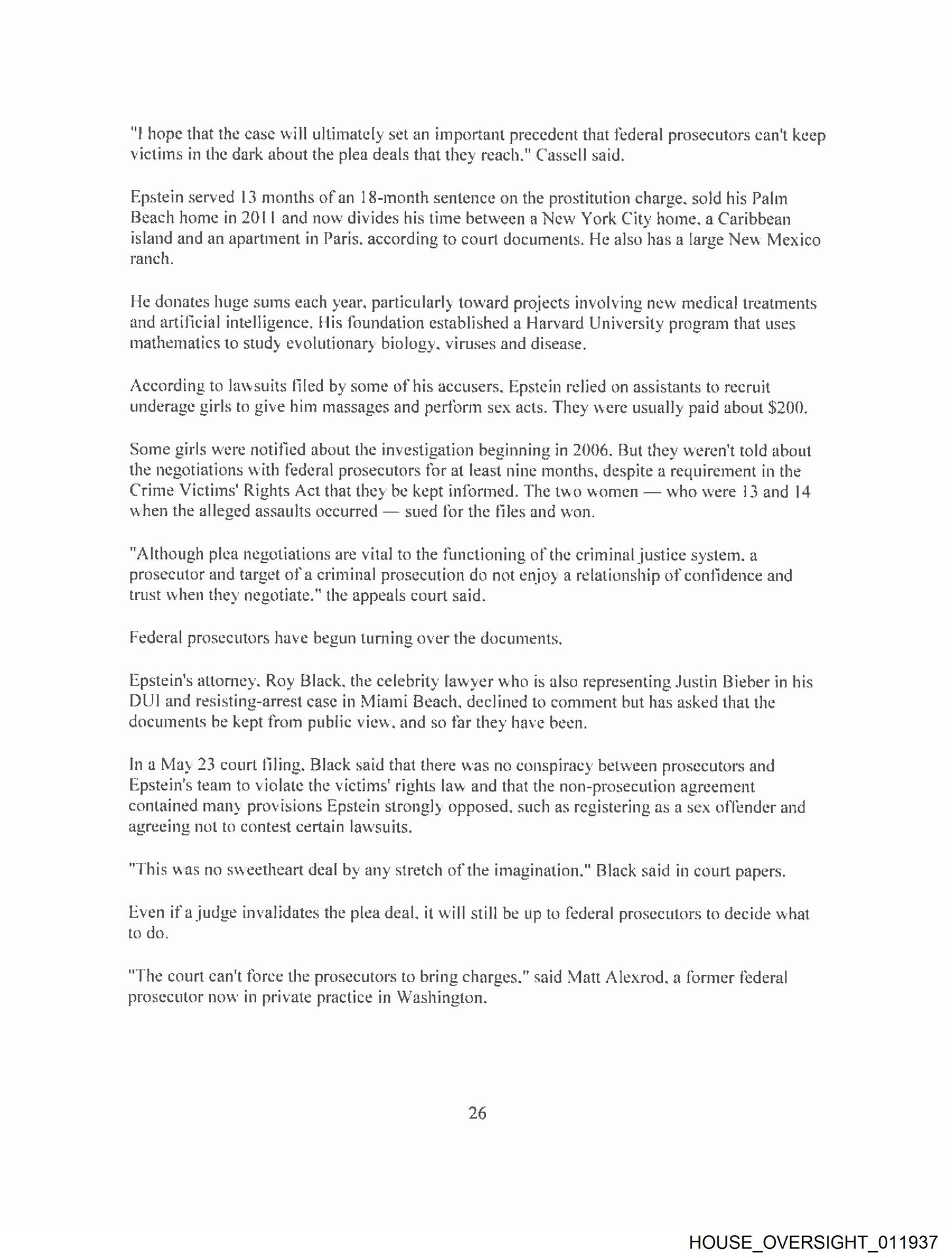 - HOUSE_OVERSIGHT_011937… prosecutors have begun turning over the documents, Epstein’s attorney, Roy Black, the celebrity lawyer who is also representing Justin Bieber in …