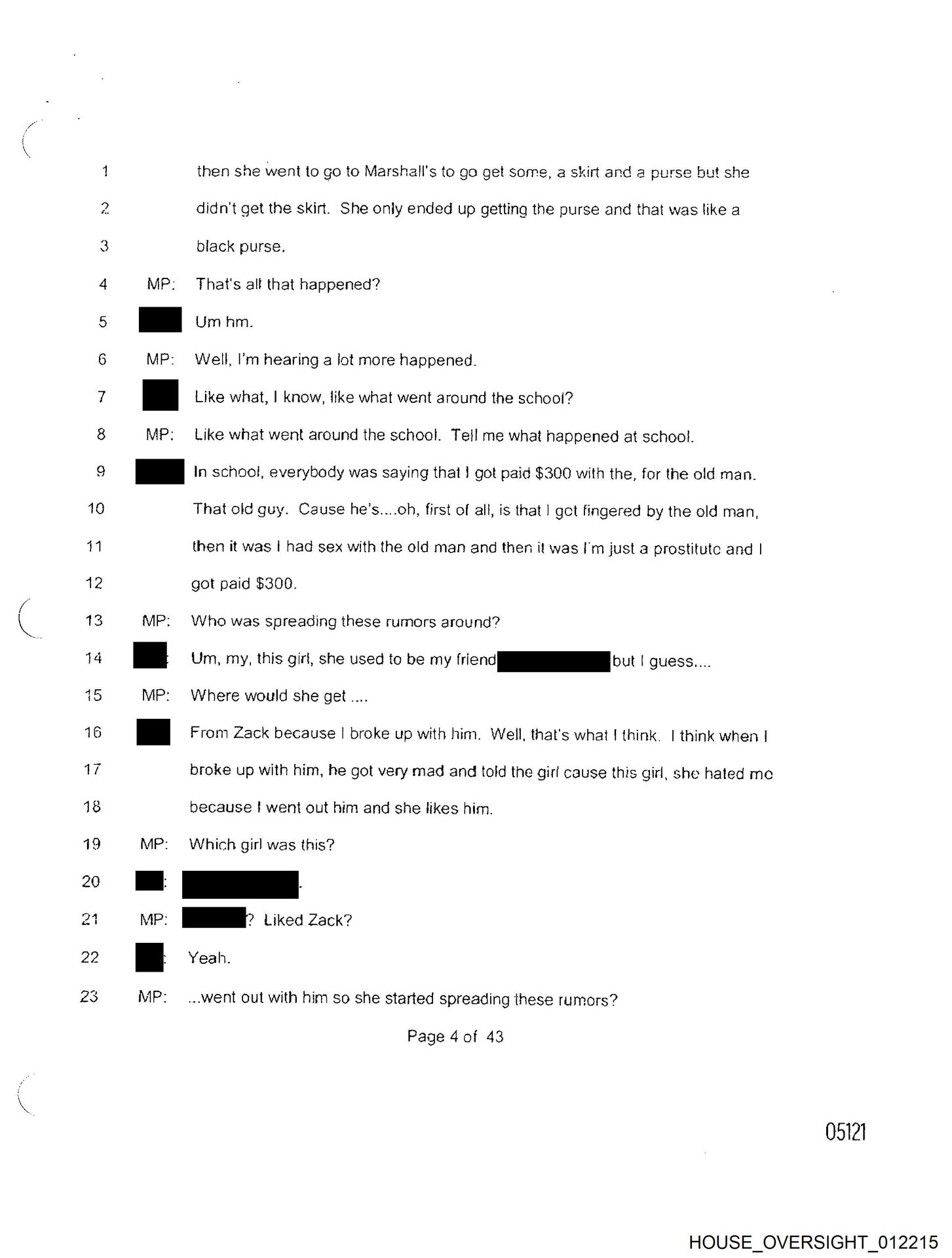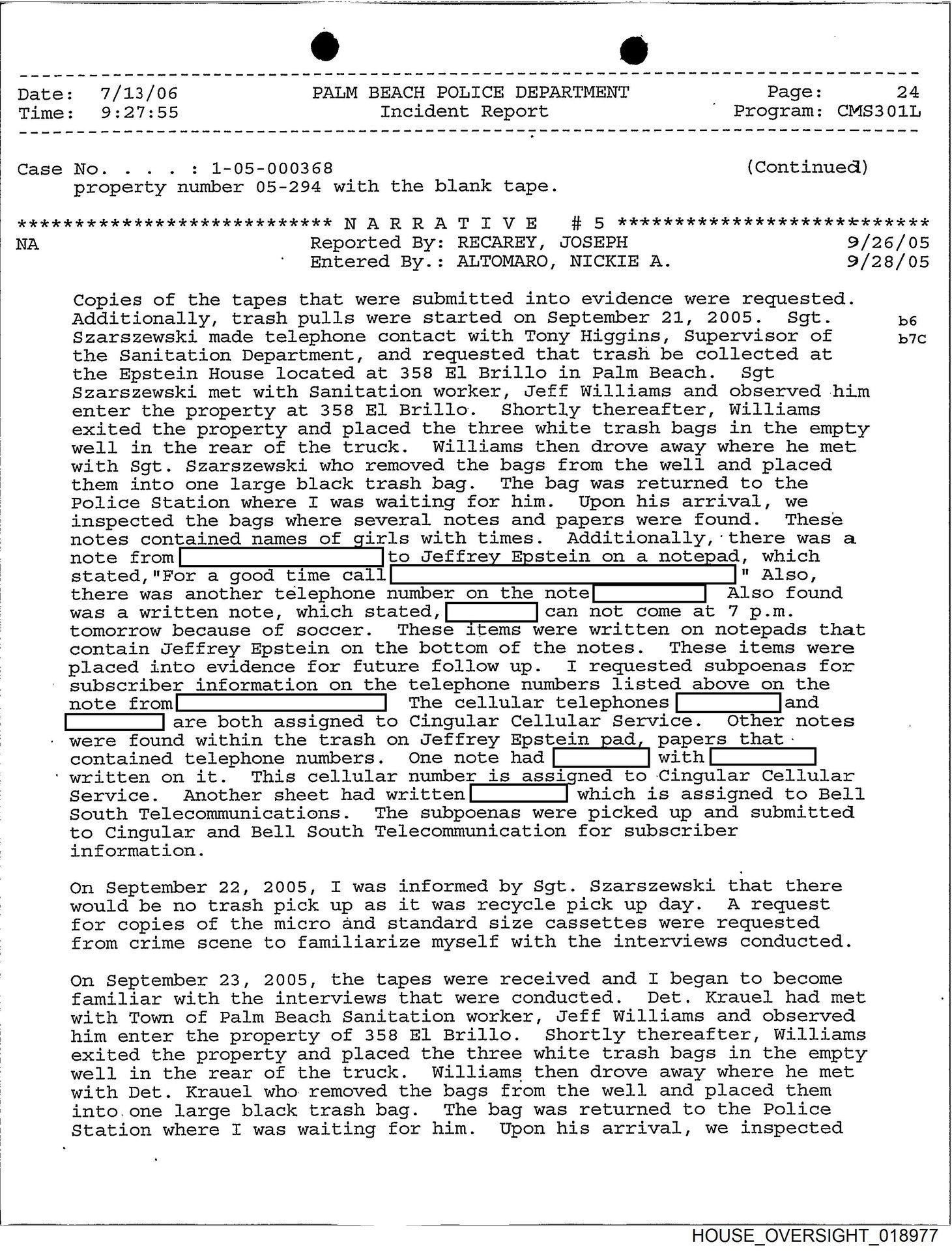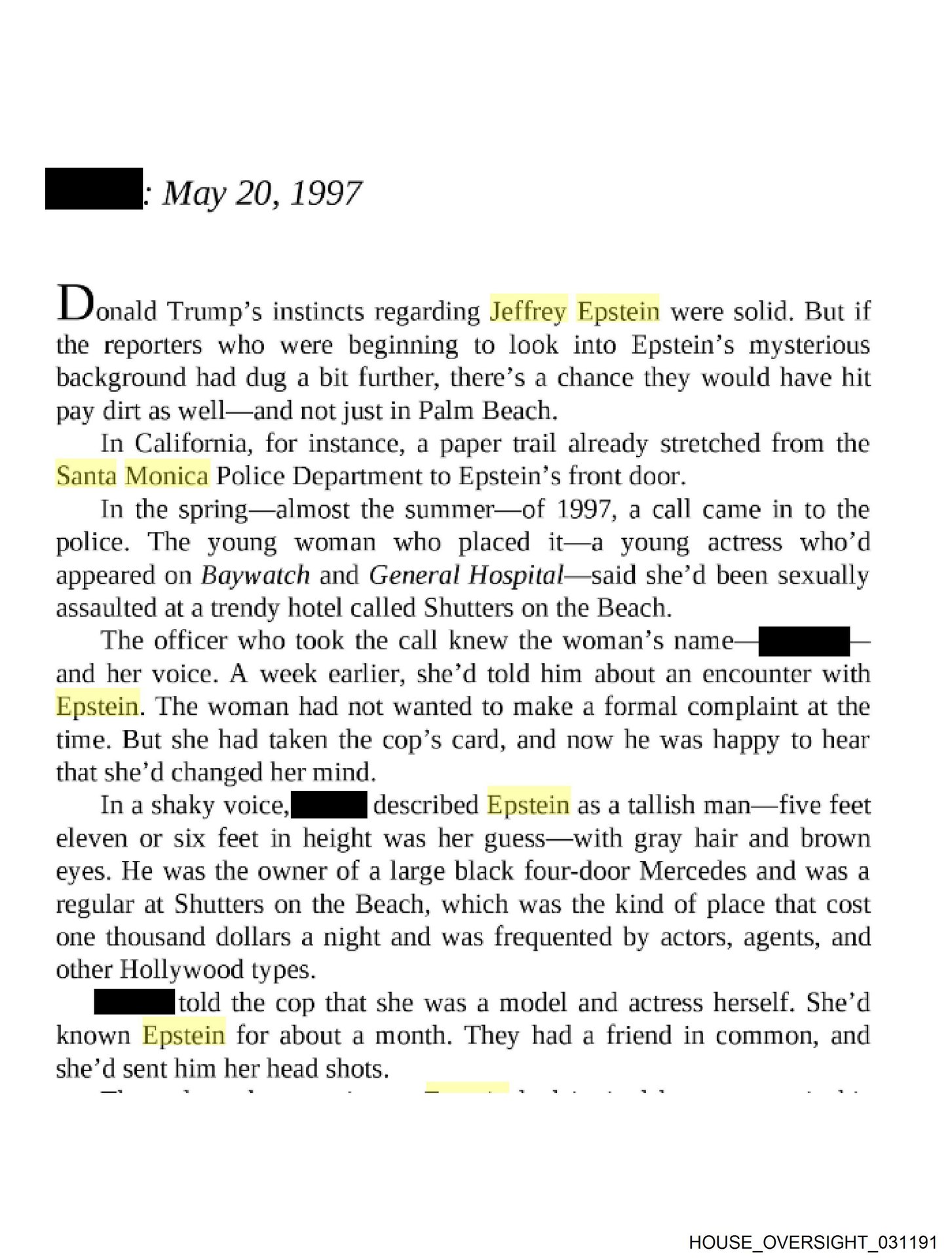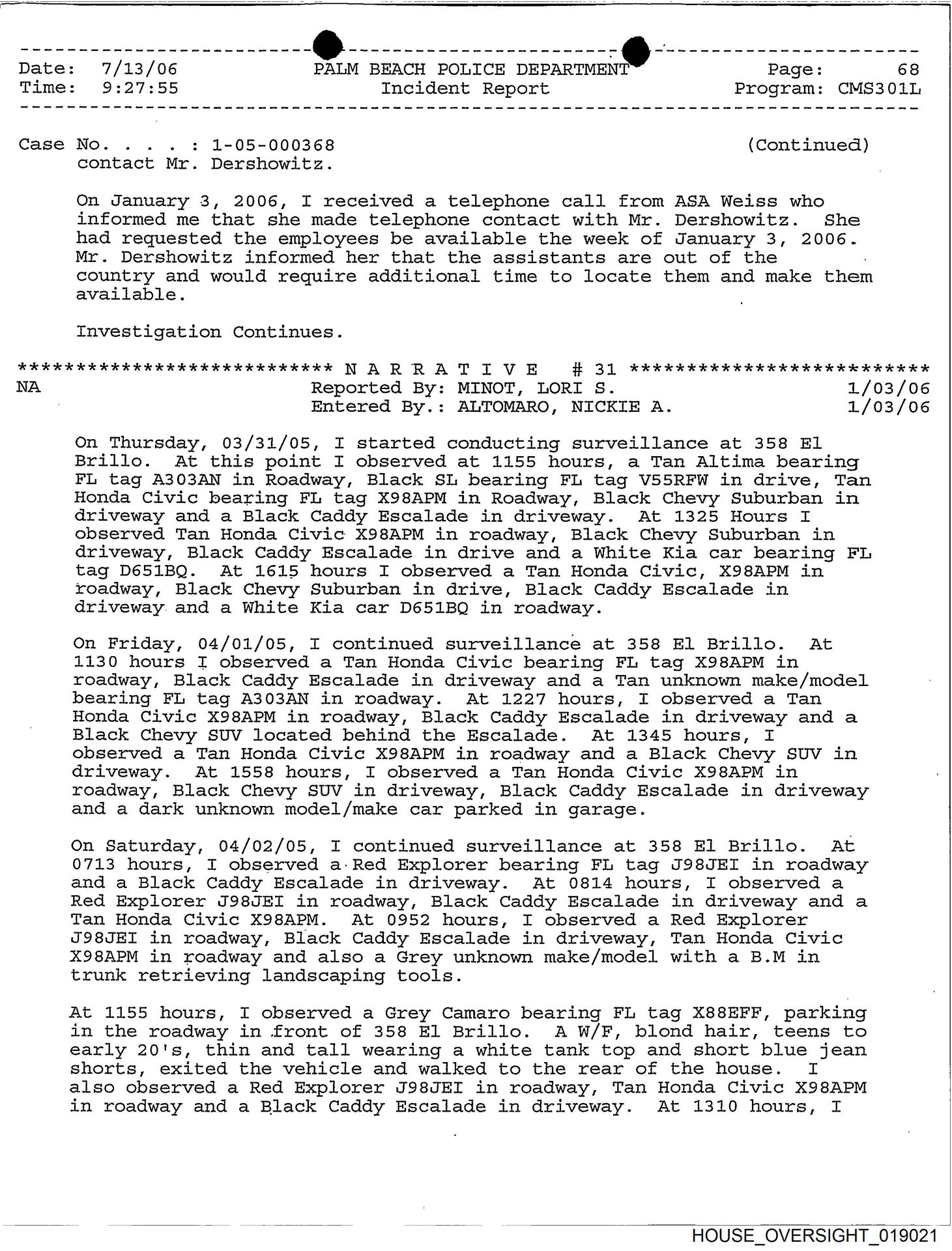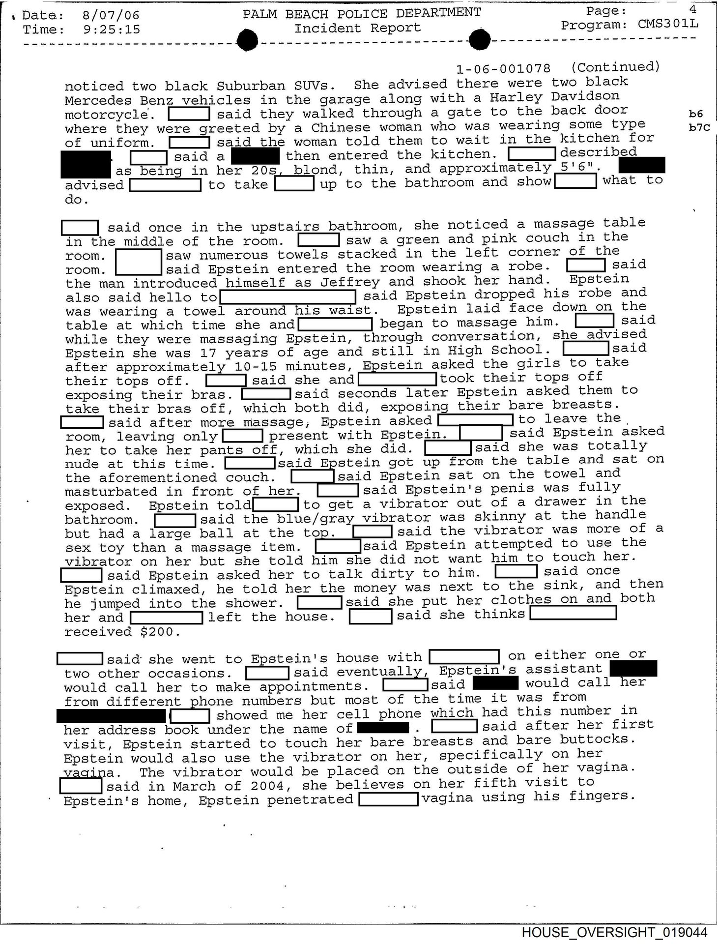 - HOUSE_OVERSIGHT_011419… saying what 8 about whom, because there are lots of blackouts through these 9 police reports. We managed somehow — and …