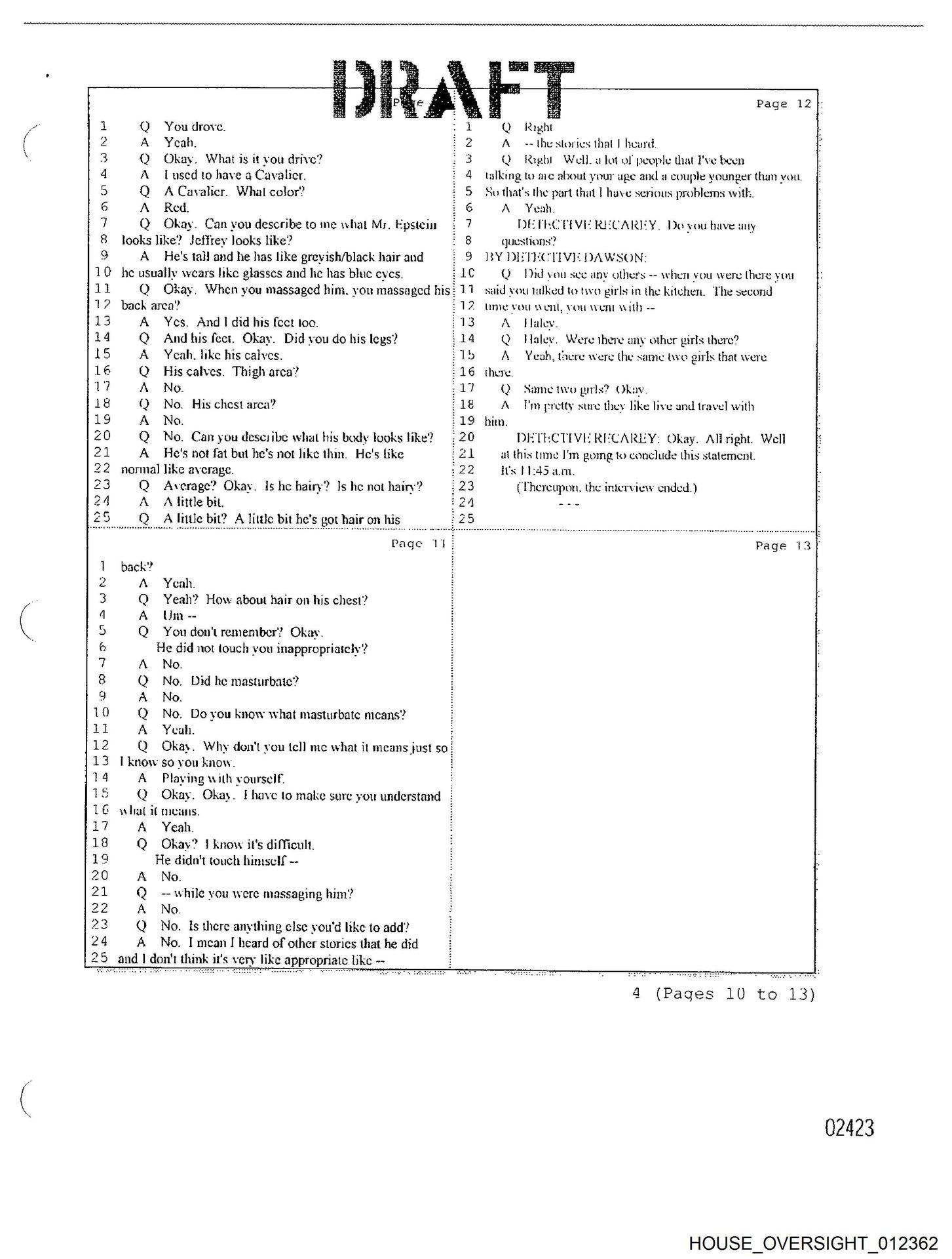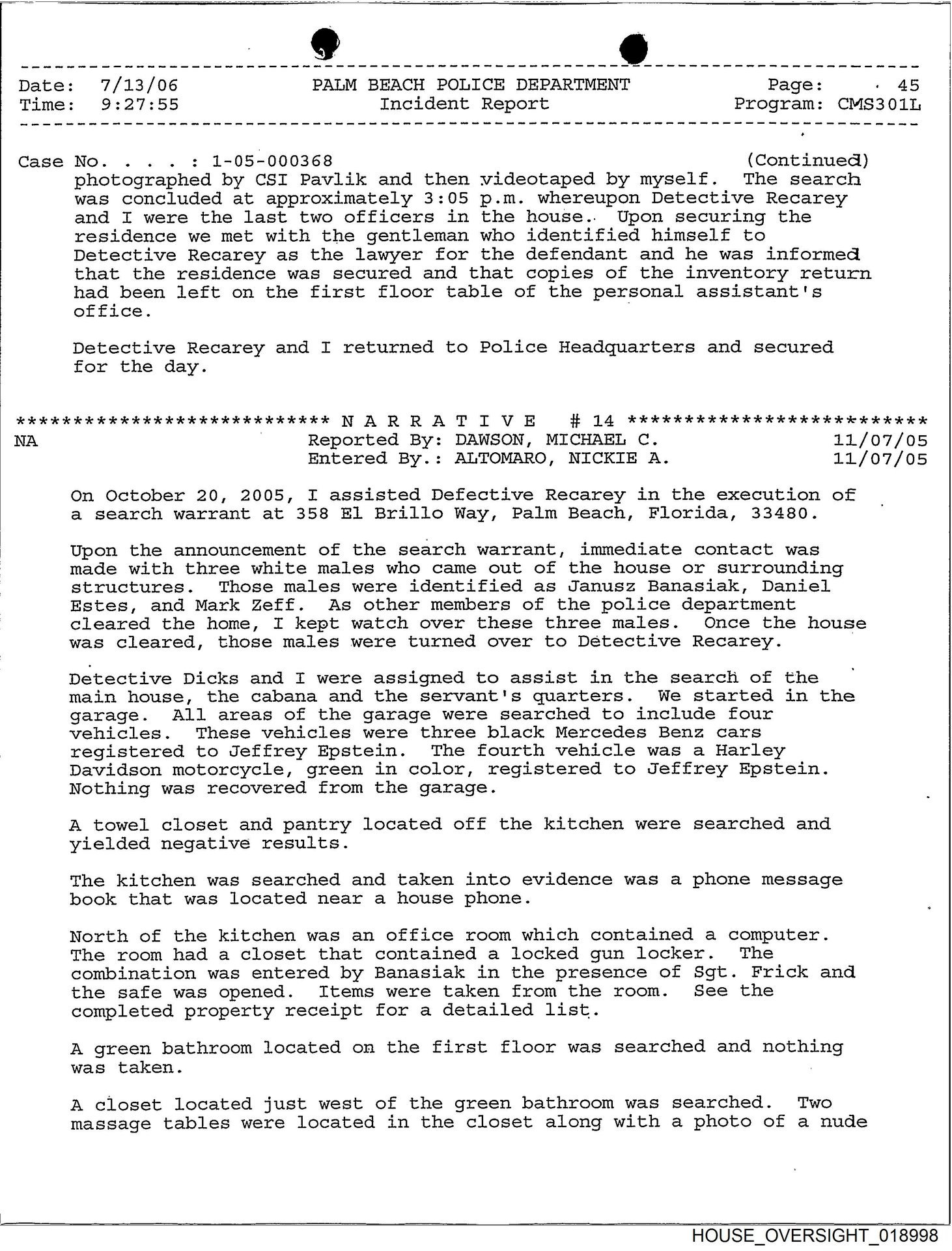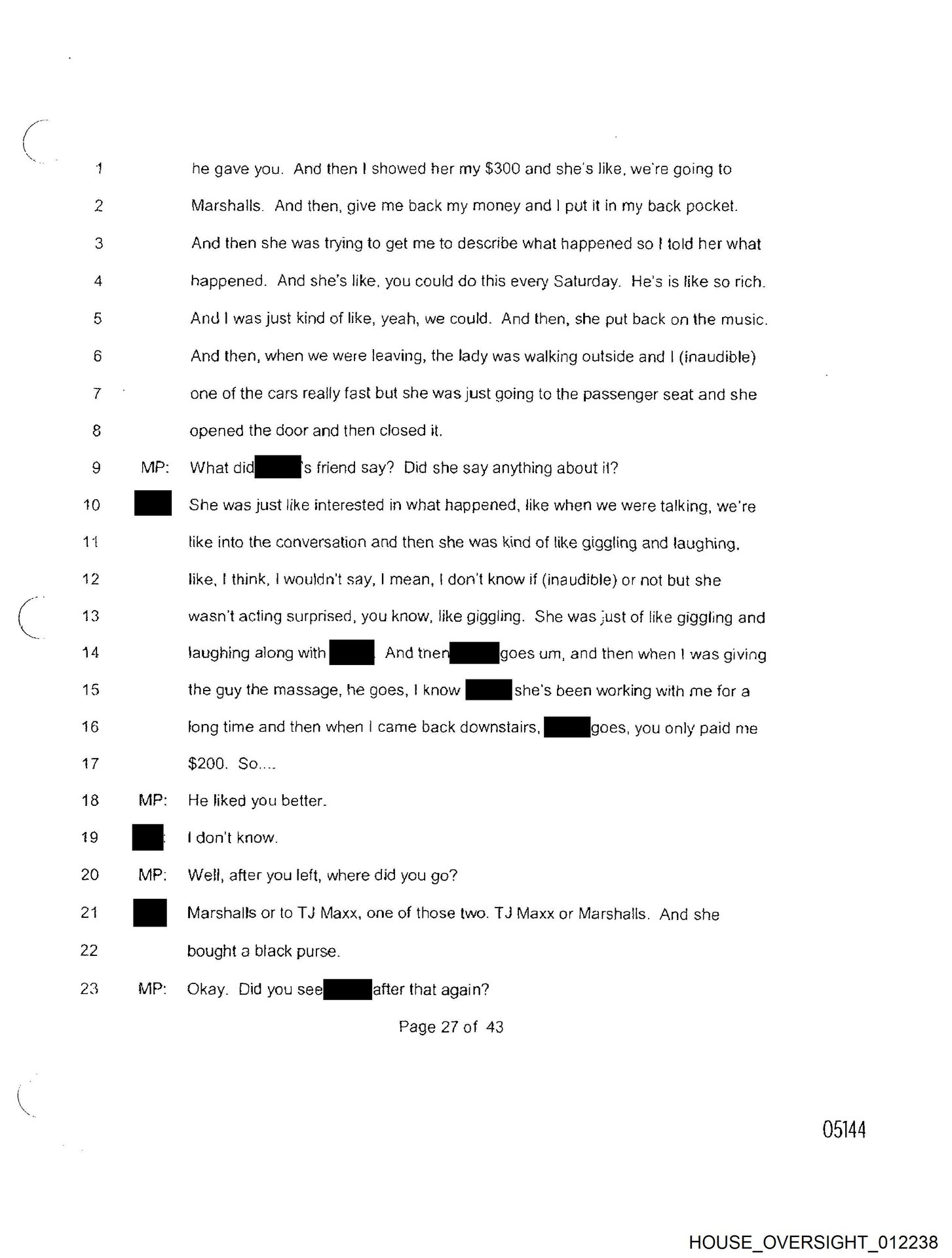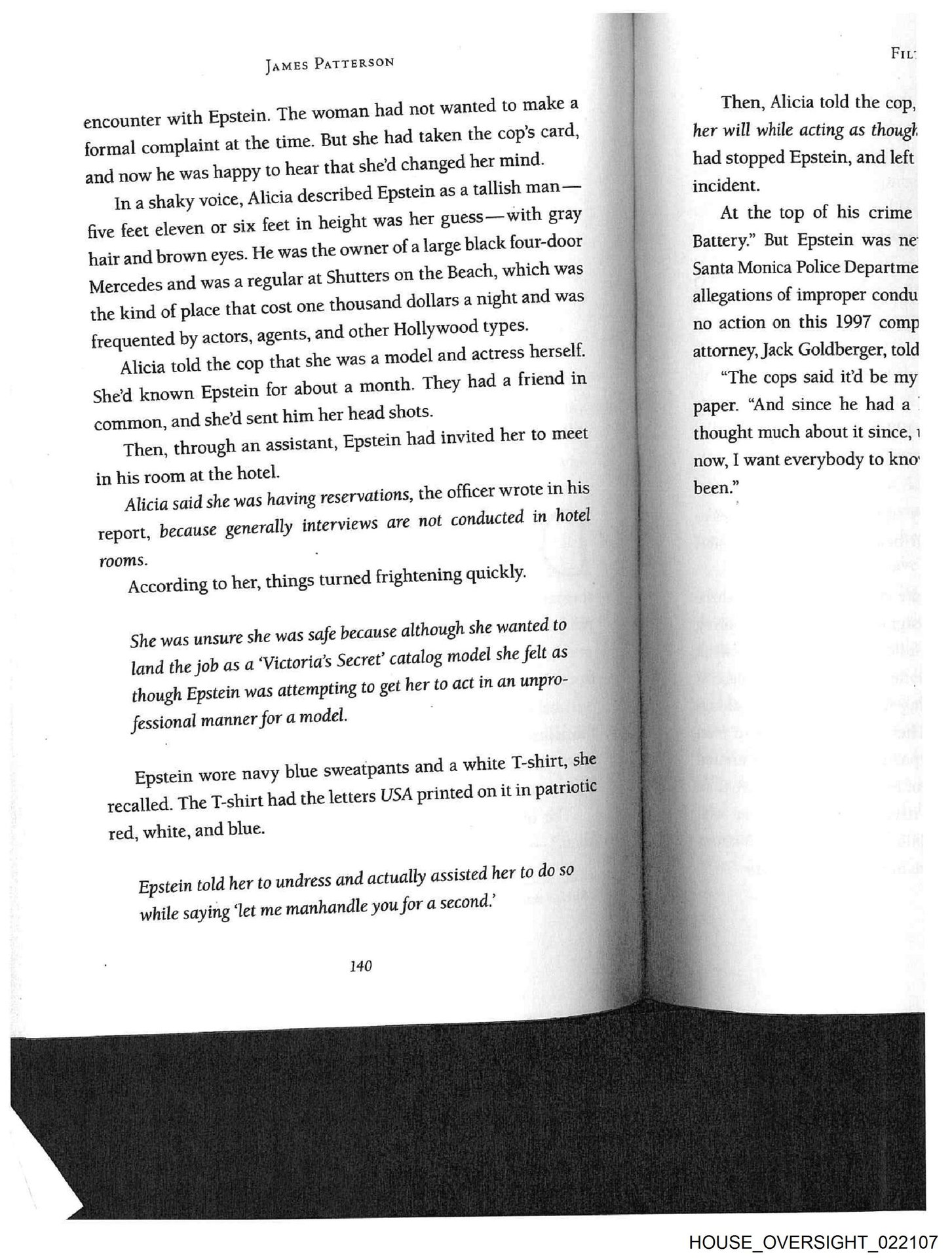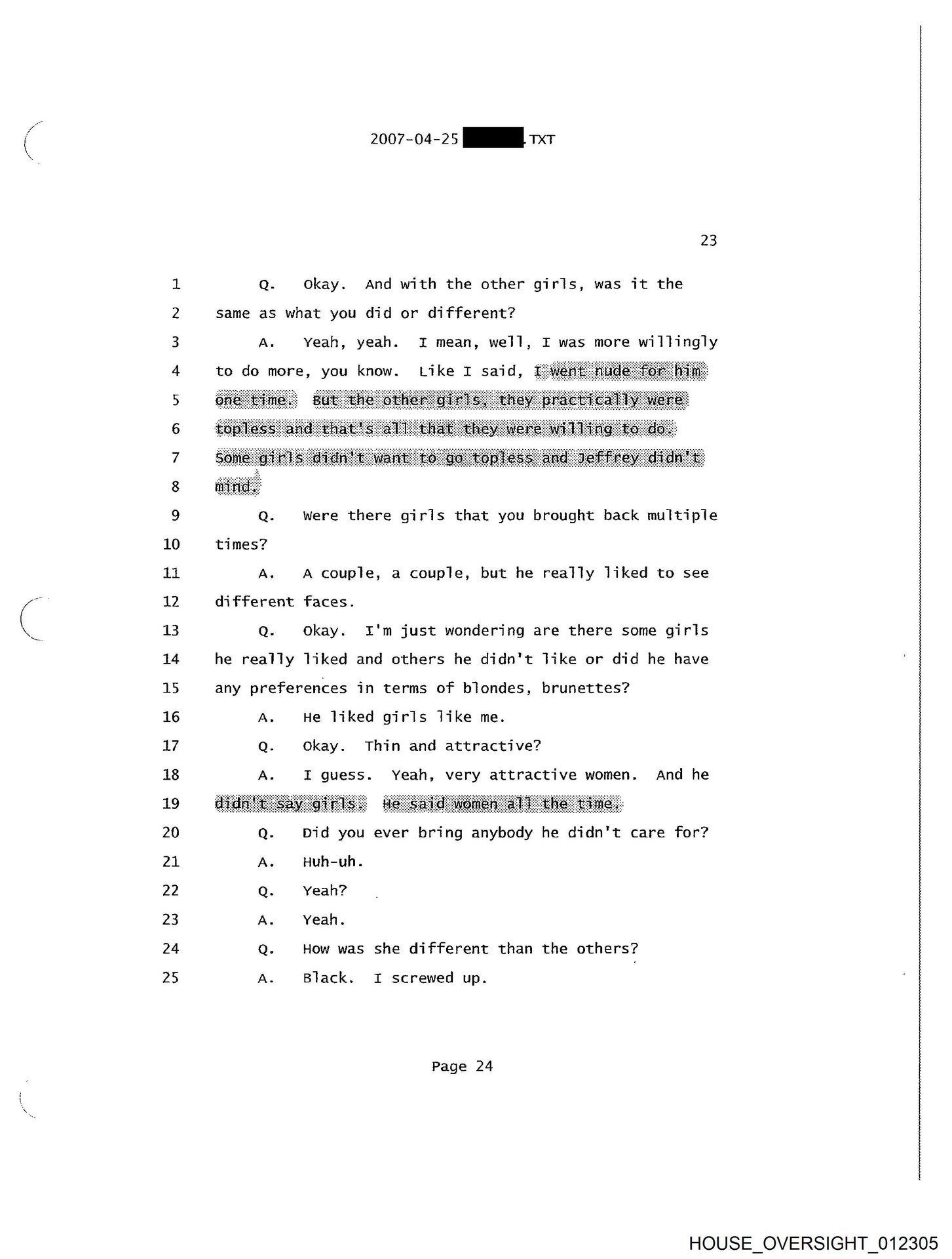 - HOUSE_OVERSIGHT_011419… saying what 8 about whom, because there are lots of blackouts through these 9 police reports. We managed somehow — and …