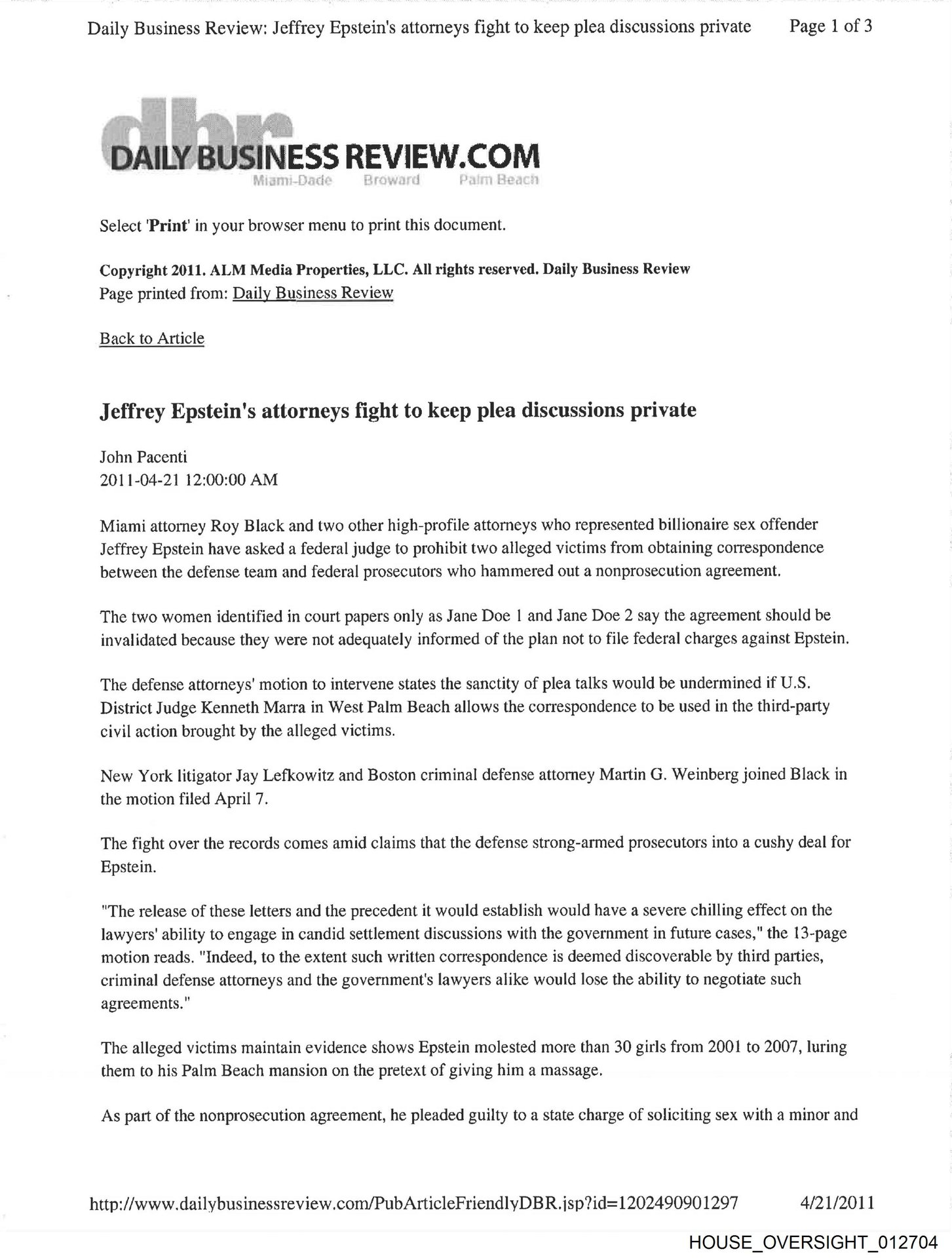 - HOUSE_OVERSIGHT_010530… States receives a Freedom of Information Act request or Roy Black—the lawyer who'd any compulsory process commanding the disclosure of the …