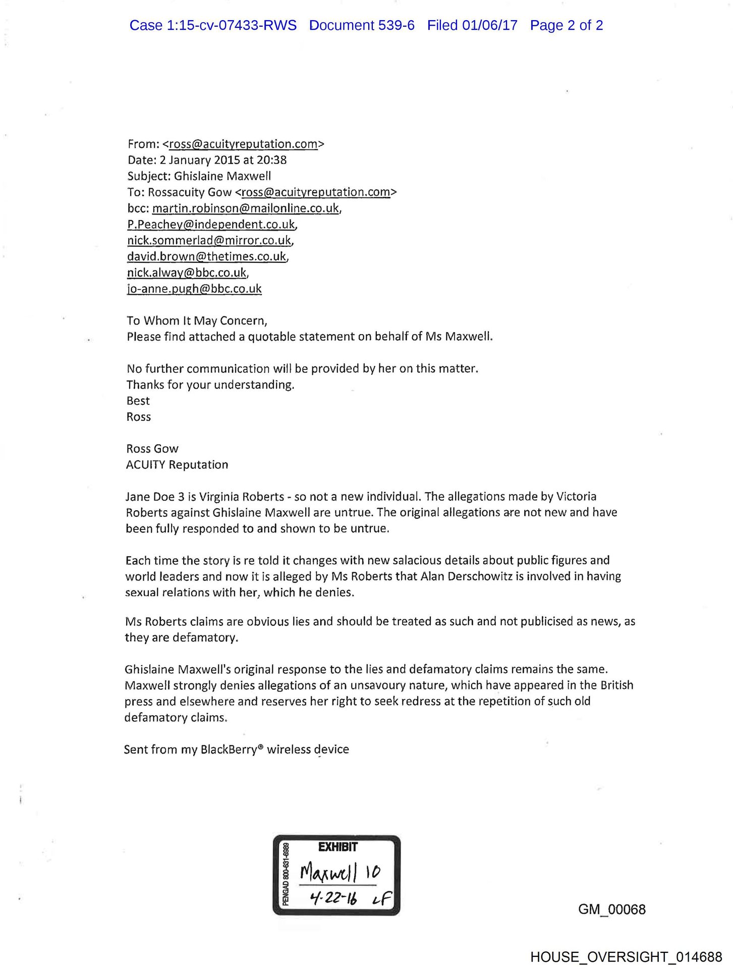 - HOUSE_OVERSIGHT_011460… briefing and 10 everything everybody wants to submit on the black book issue? ide MS. McCAWLEY: Well, yes, your Honor. So …