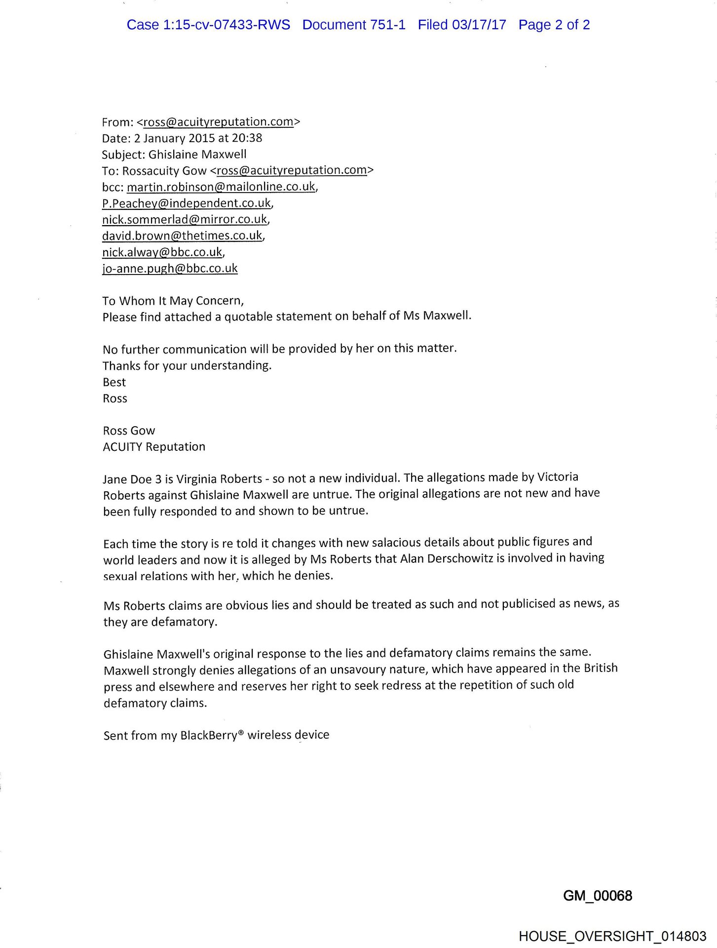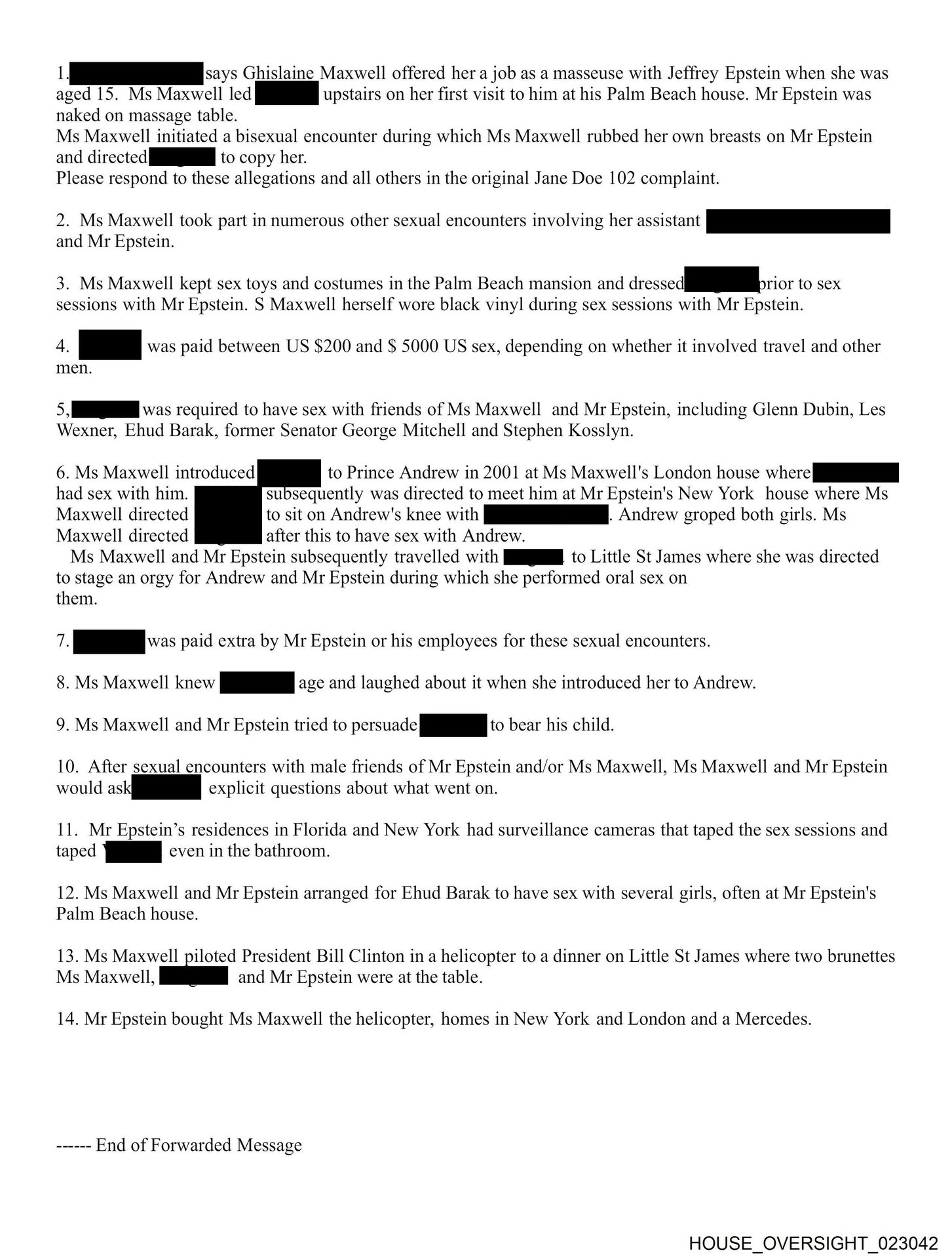 - HOUSE_OVERSIGHT_012033… she had with these men so that he could potentially blackmail them,” the court filing said. “One such powerful individual that …