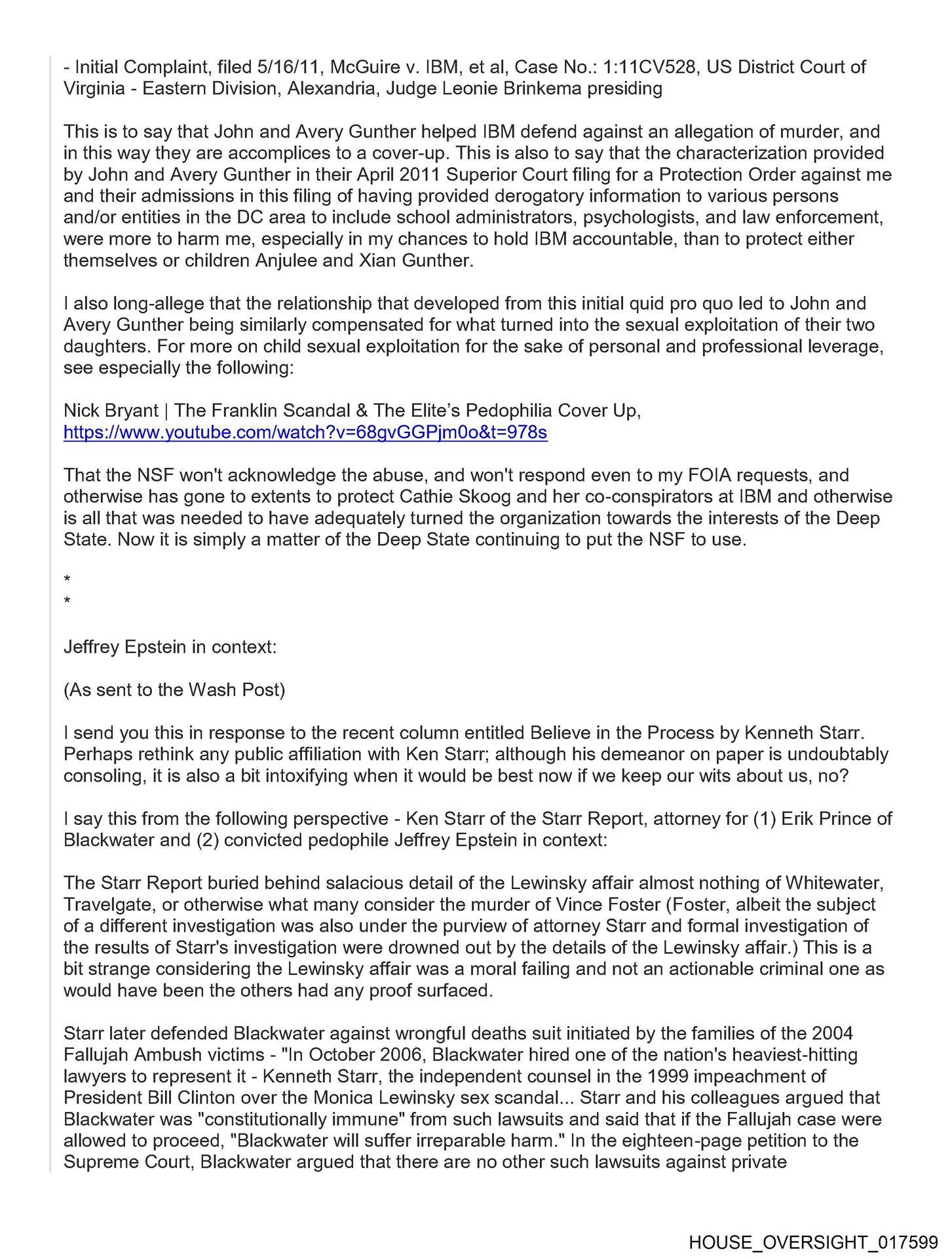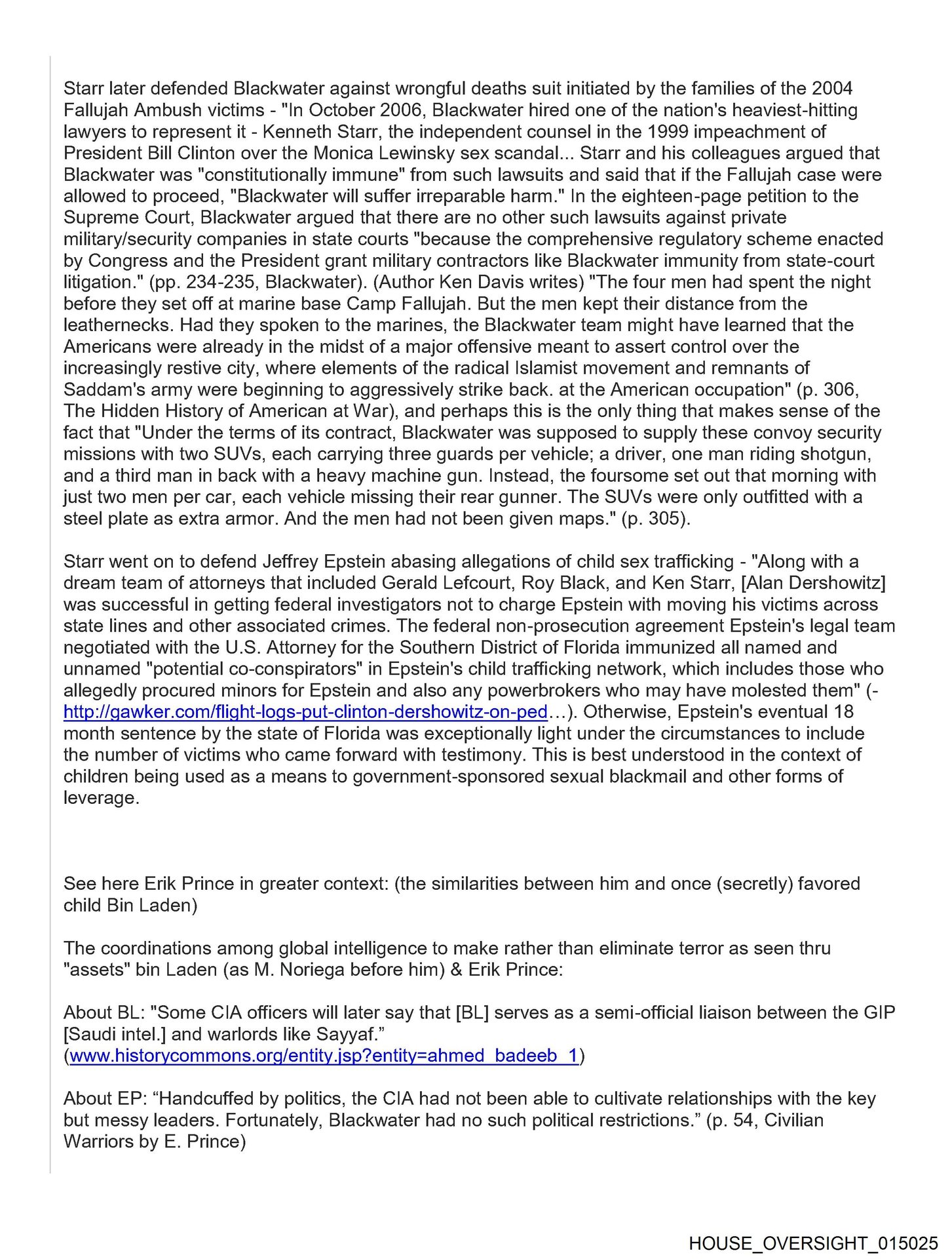 - HOUSE_OVERSIGHT_017599… of the Starr Report, attorney for (1) Erik Prince of Blackwater and (2) convicted pedophile Jeffrey Epstein in context: The Starr …