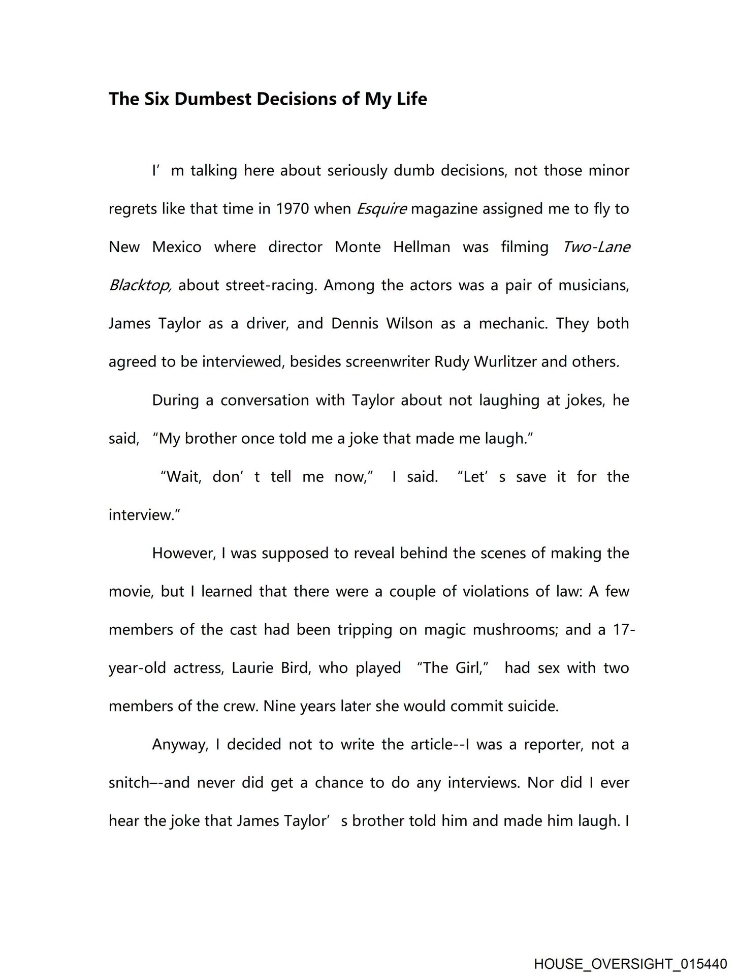 - HOUSE_OVERSIGHT_010874… 025024 12 financial gain, as well as to obtain potential blackmail ozses3 12 Q. And after December 30th, 2014, the references …