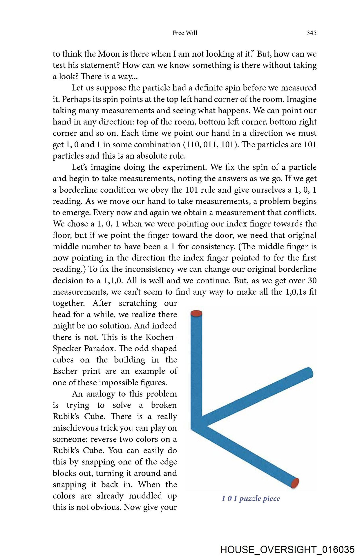 - HOUSE_OVERSIGHT_016037Free Will 347 I ye tls Kochen-Specker Cube cannot. It must make up its mind on the fly. …