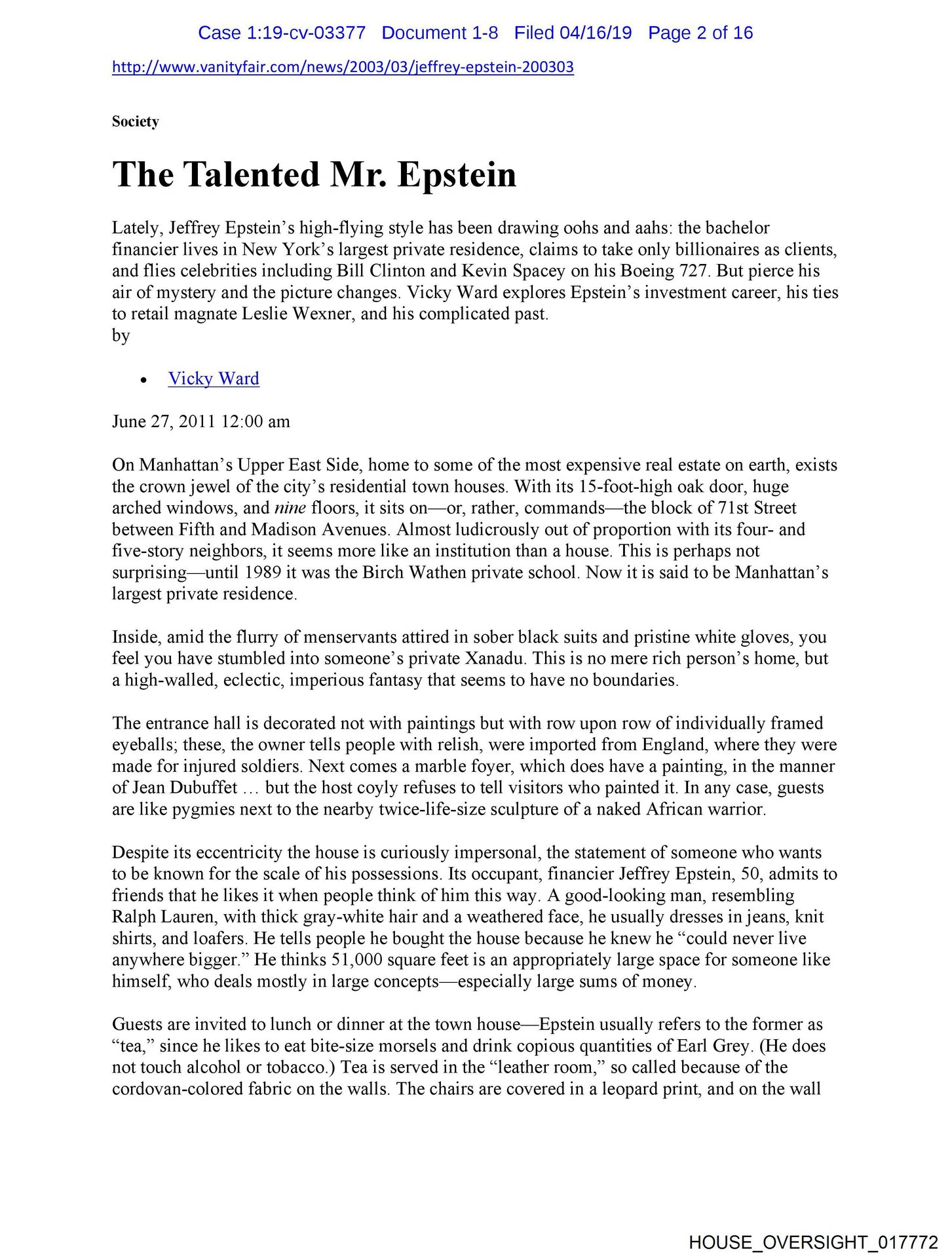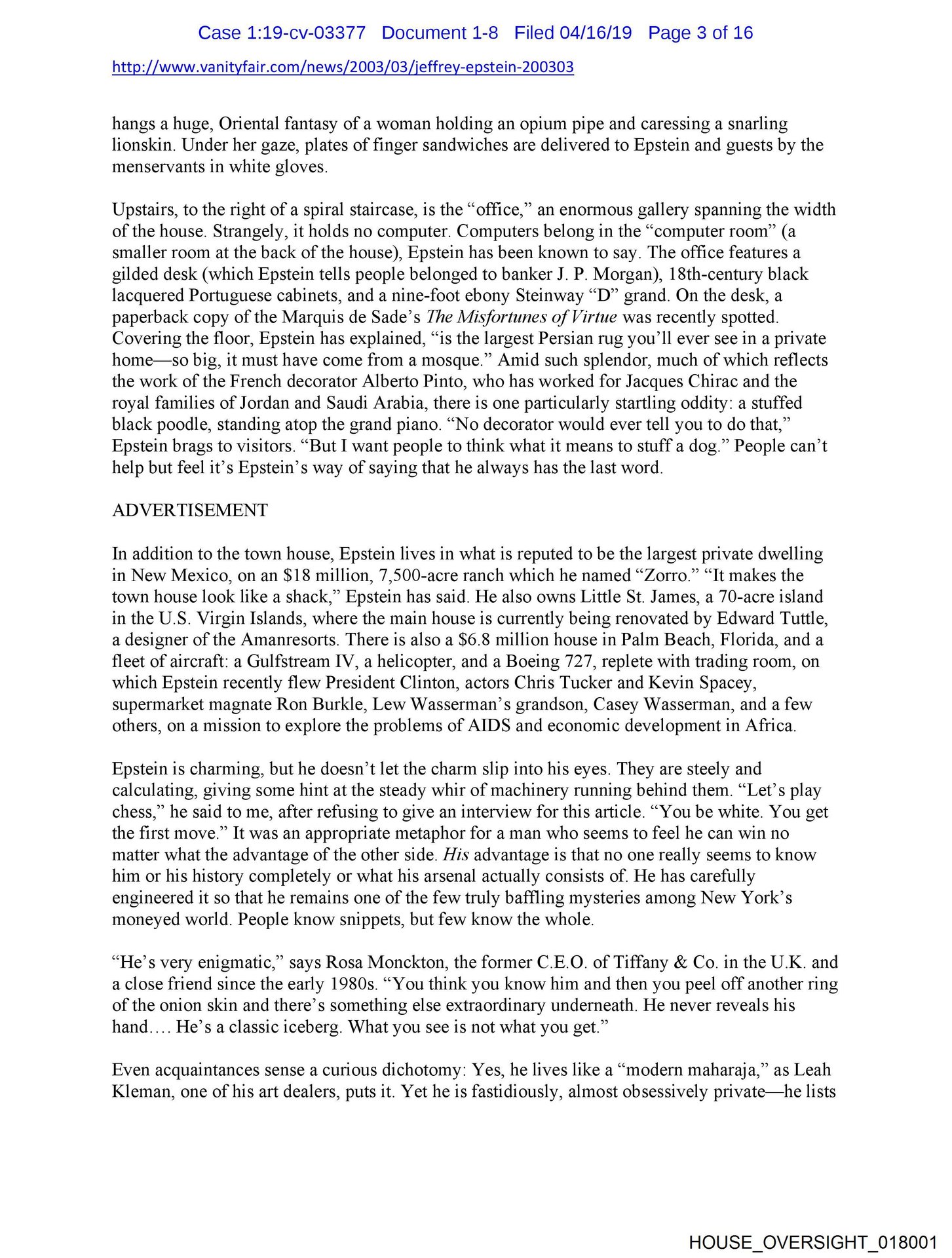 - HOUSE_OVERSIGHT_028294… widely reported, when it was flogged immediately from the White Cube stand during the Frieze preview. Apparently, the cynical press refers …