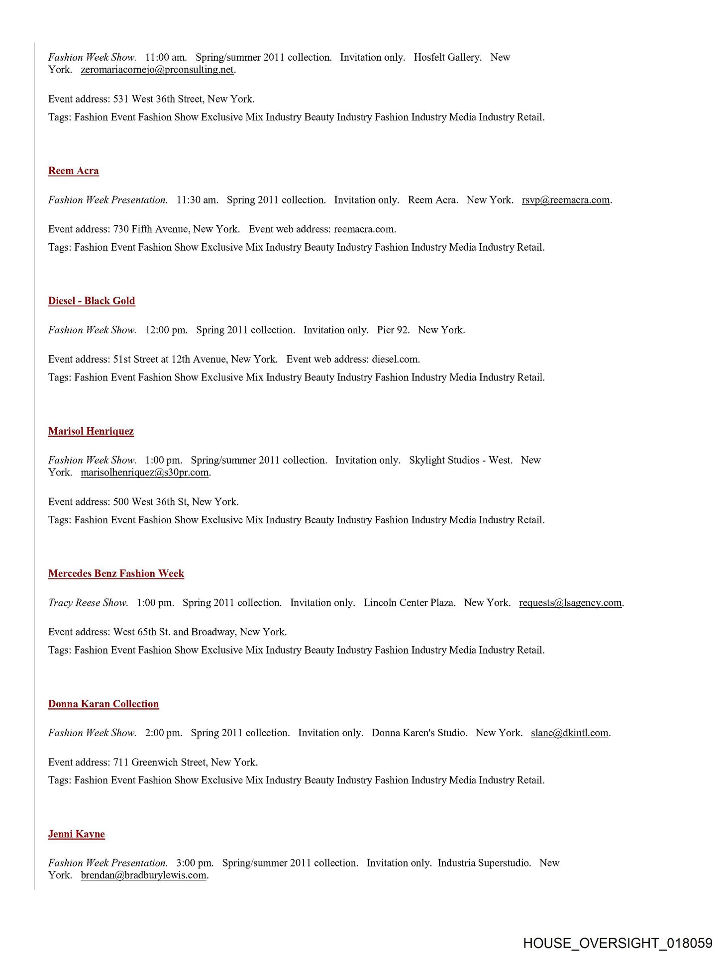 - HOUSE_OVERSIGHT_018059… Industry Beauty Industry Fashion Industry Media Industry Retail. Diesel – Black Gold Fashion Week Show. 12:00 pm. Spring 2011 collection. Invitation …