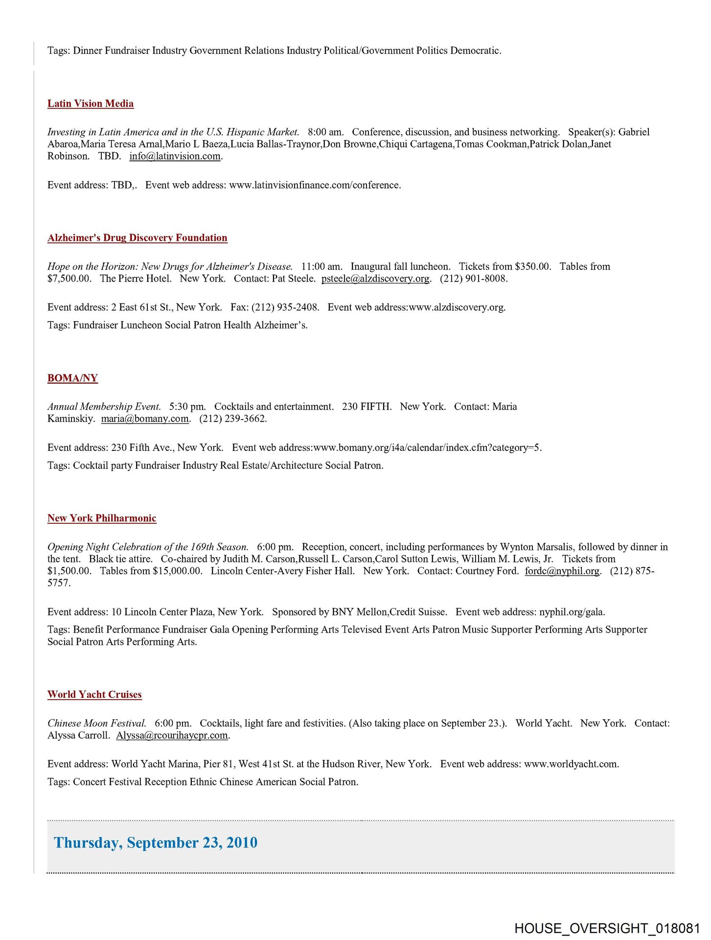 - HOUSE_OVERSIGHT_018081… performances by Wynton Marsalis, followed by dinner in the tent. Black tie attire. Co-chaired by Judith M. Carson,Russell L. Carson,Carol Sutton …