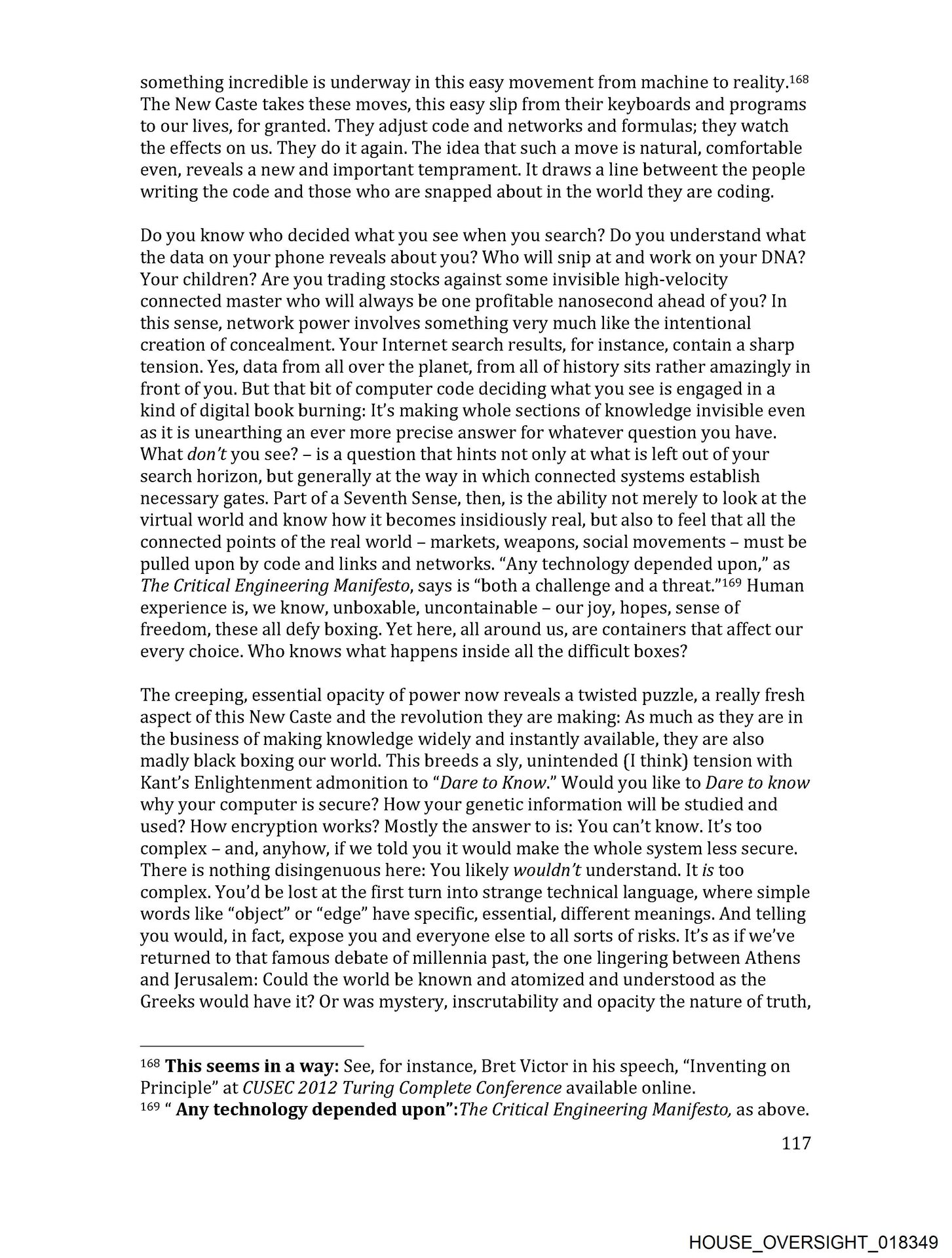 - HOUSE_OVERSIGHT_011288… great power in multiple arenas and for new forms of blackmail, threats, and control. SUMMARY Powerful personalized persuasion technologies are positioned …
