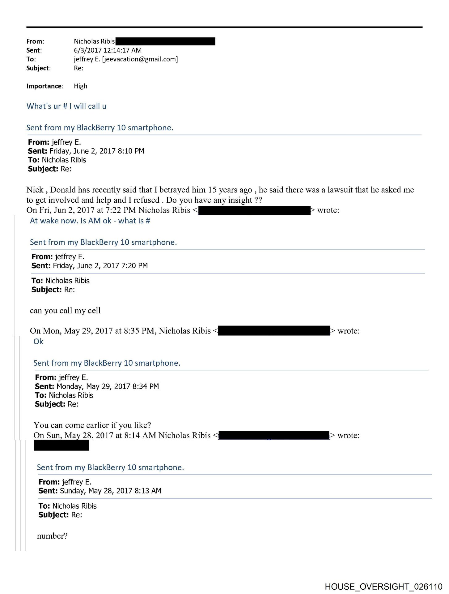 - HOUSE_OVERSIGHT_031545… trump told him to go the russkies Sent from my BlackBerry 10 smartphone. From: Jeffrey E. Sent: Friday, December 1, 2017 …