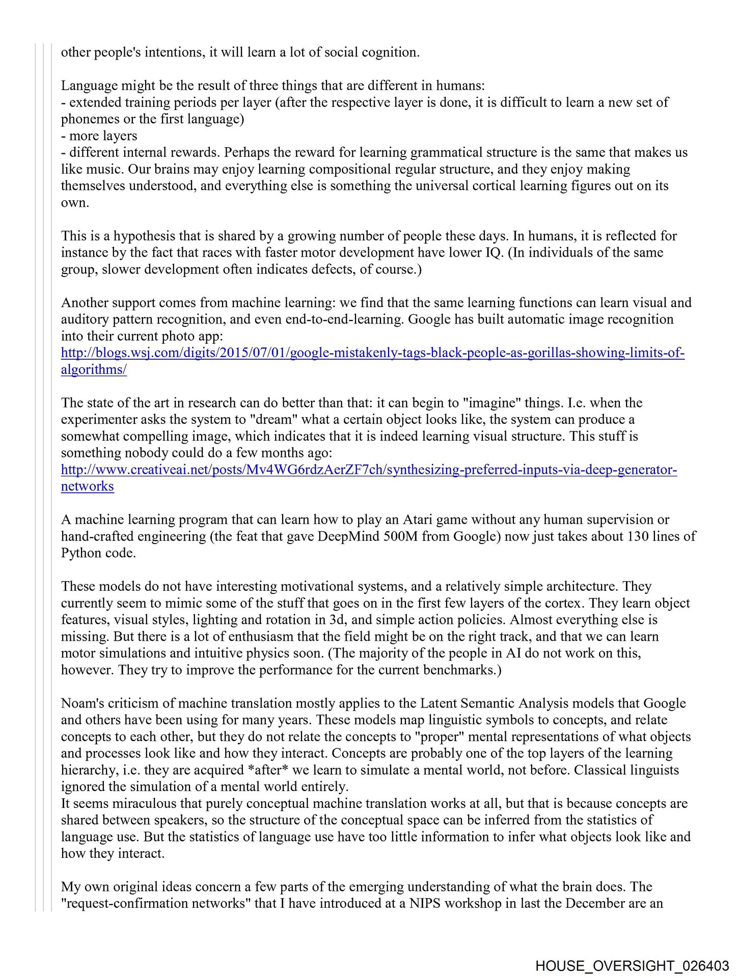 - HOUSE_OVERSIGHT_025958… image recognition into their current photo app: http://blogs.wsj . com/digits/2015/07/01/go ogle-mistakenly-tags-black-p eop le-as-gorillas-showing-limits-o f- algorithms/ The state of the art in …