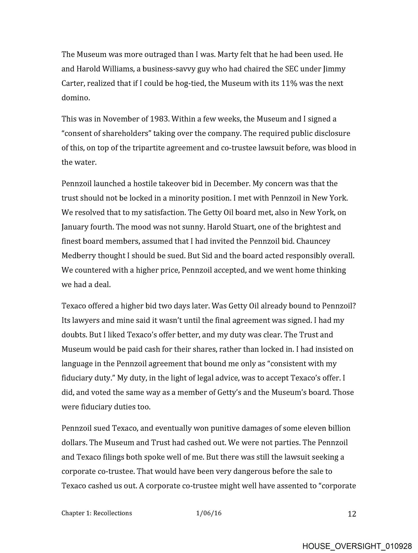 - HOUSE_OVERSIGHT_010928… their shares, rather than locked in. I had insisted on language in the Pennzoil agreement that bound me only as “consistent …