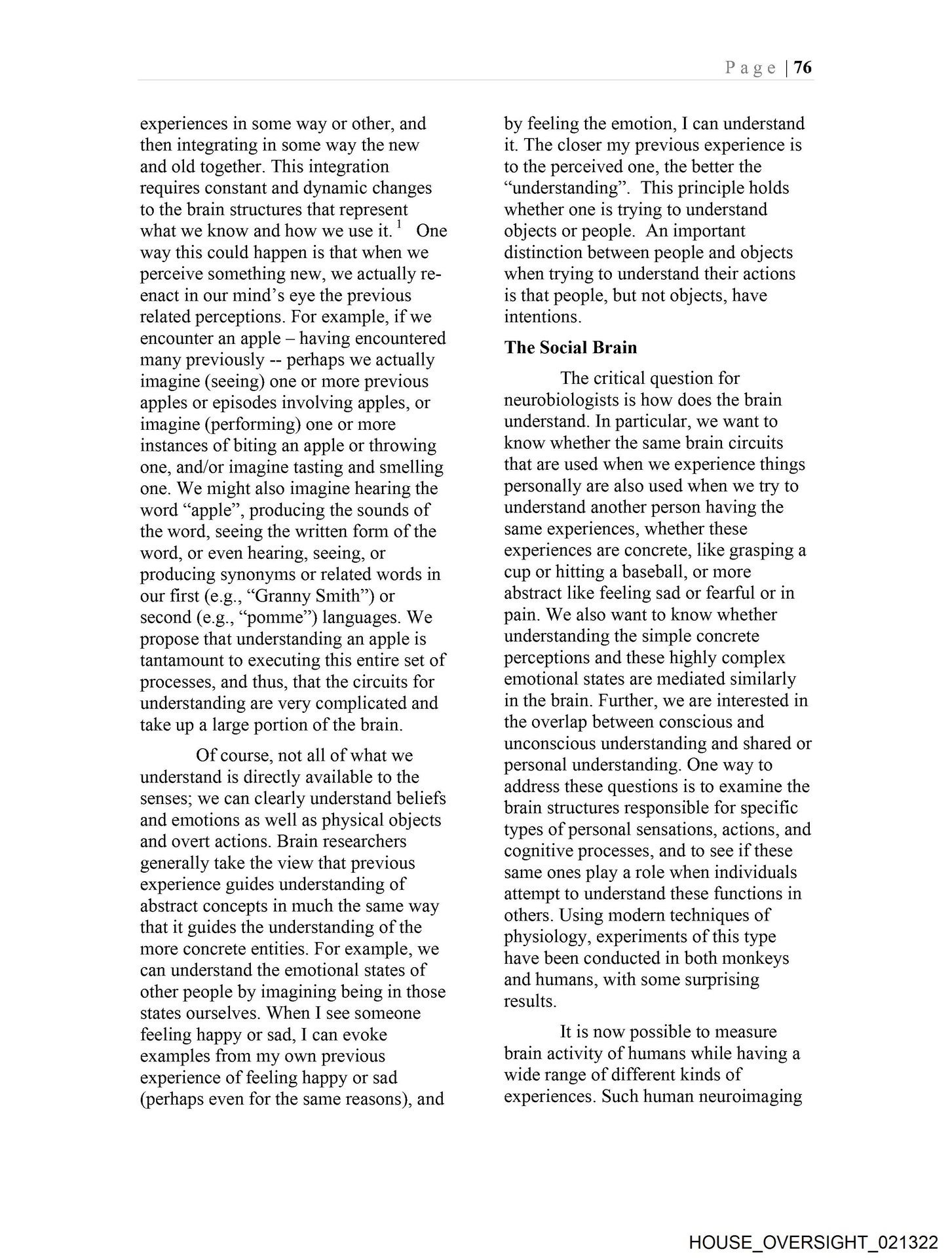- HOUSE_OVERSIGHT_012776… making, self control, short-term memory, social relationships, tool use and language. For detail, and further evidence of the importance of connectivity …