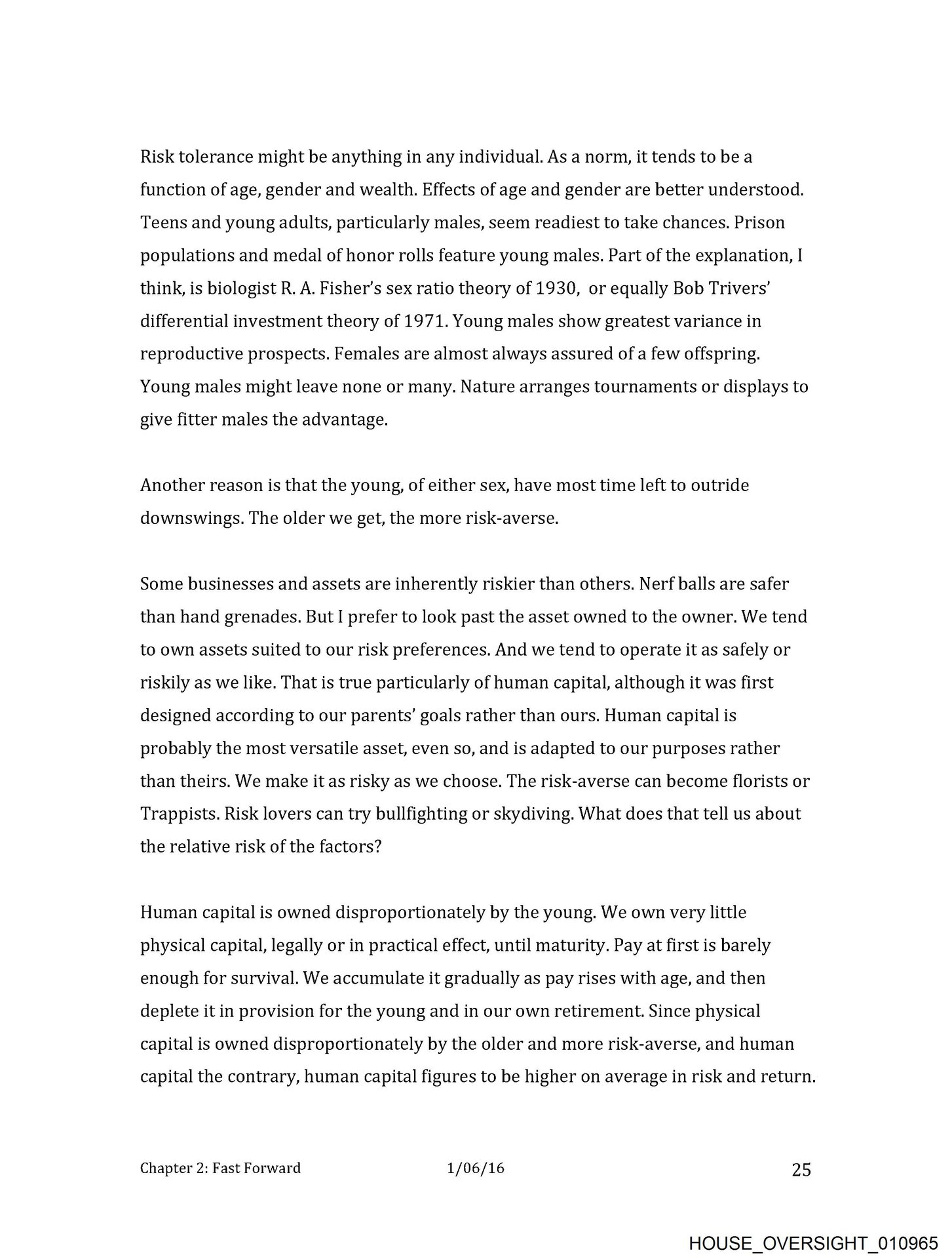 - HOUSE_OVERSIGHT_010965… we choose. The risk-averse can become florists or Trappists. Risk lovers can try bullfighting or skydiving. What does that tell us …