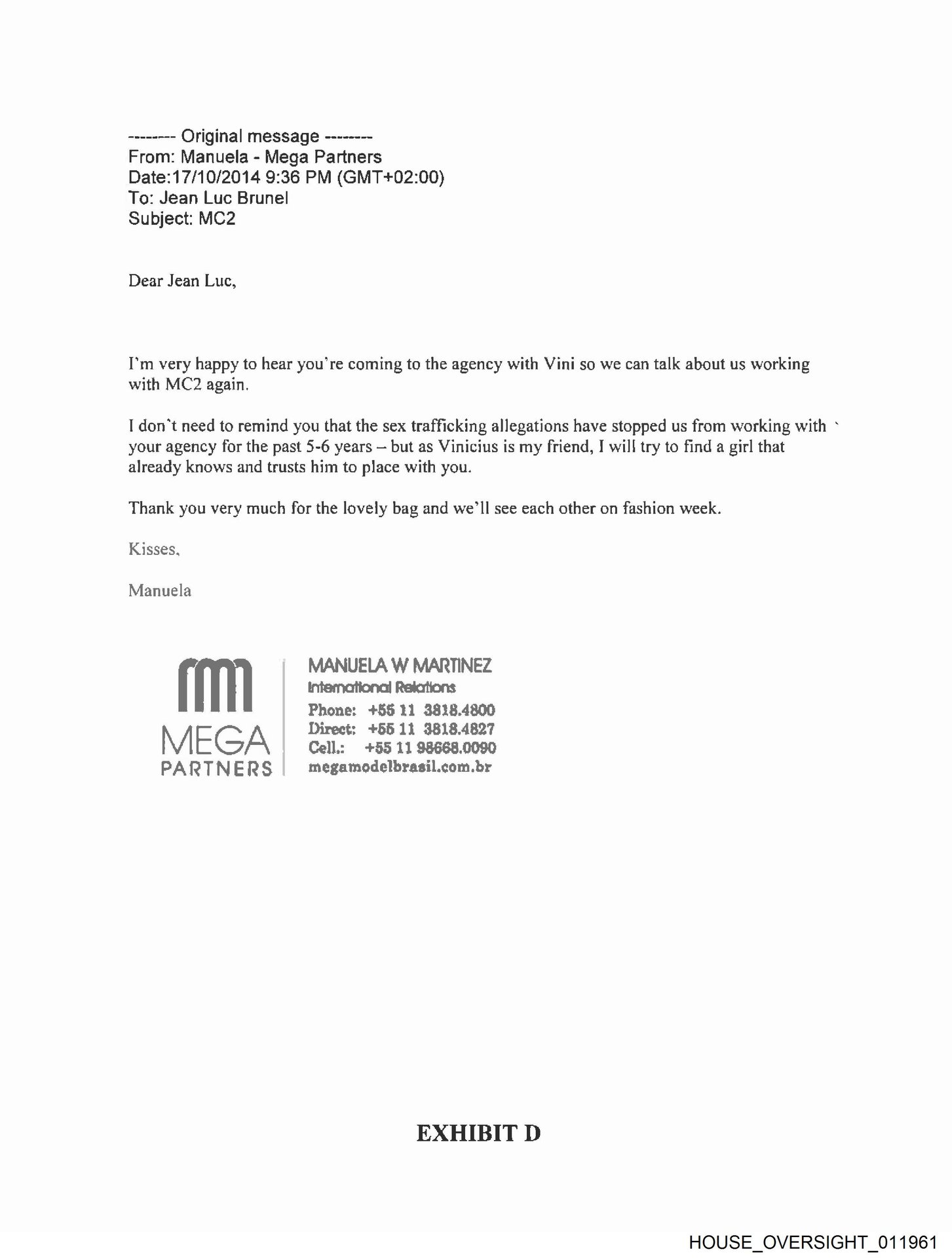 - HOUSE_OVERSIGHT_012121… contacts in the acting world or modeling world and he loves pretty girls, you should come back and meet him, make …