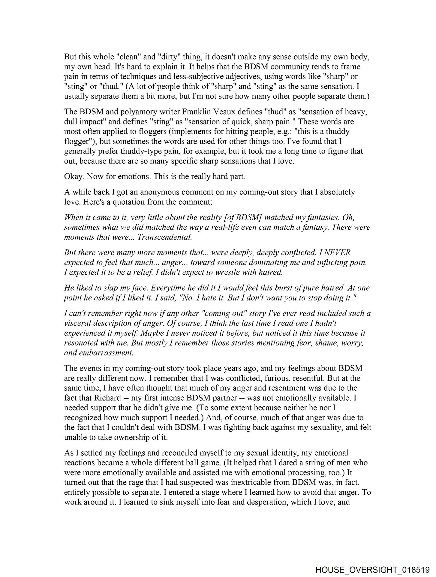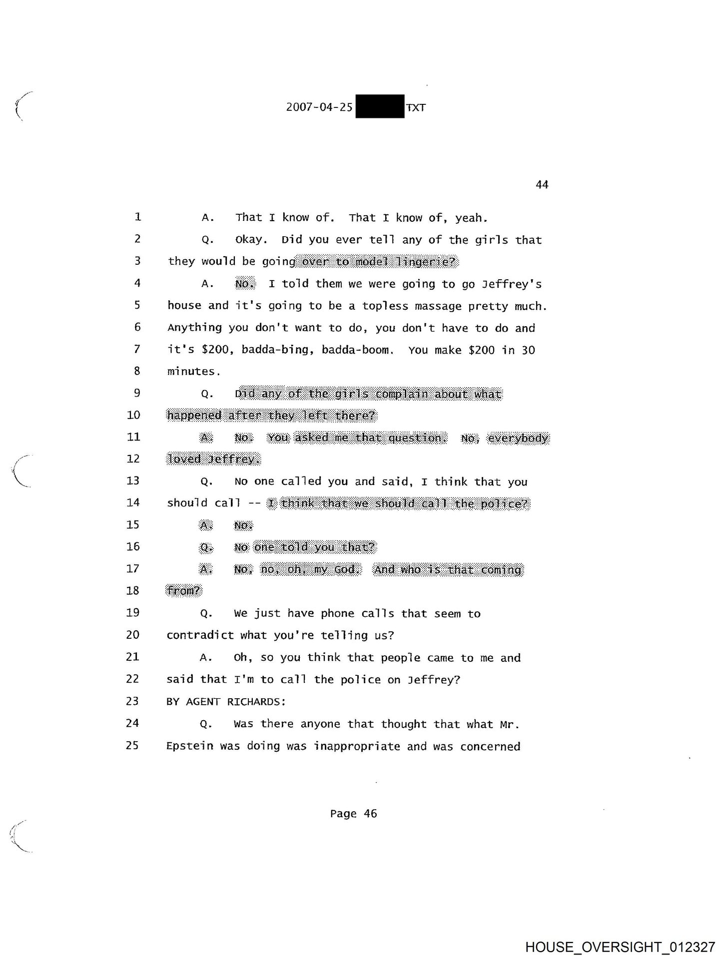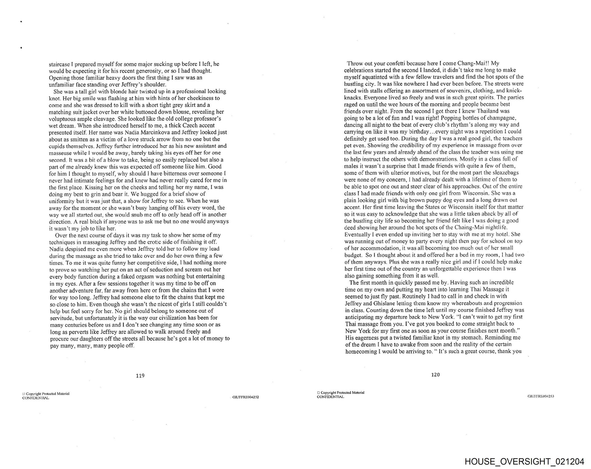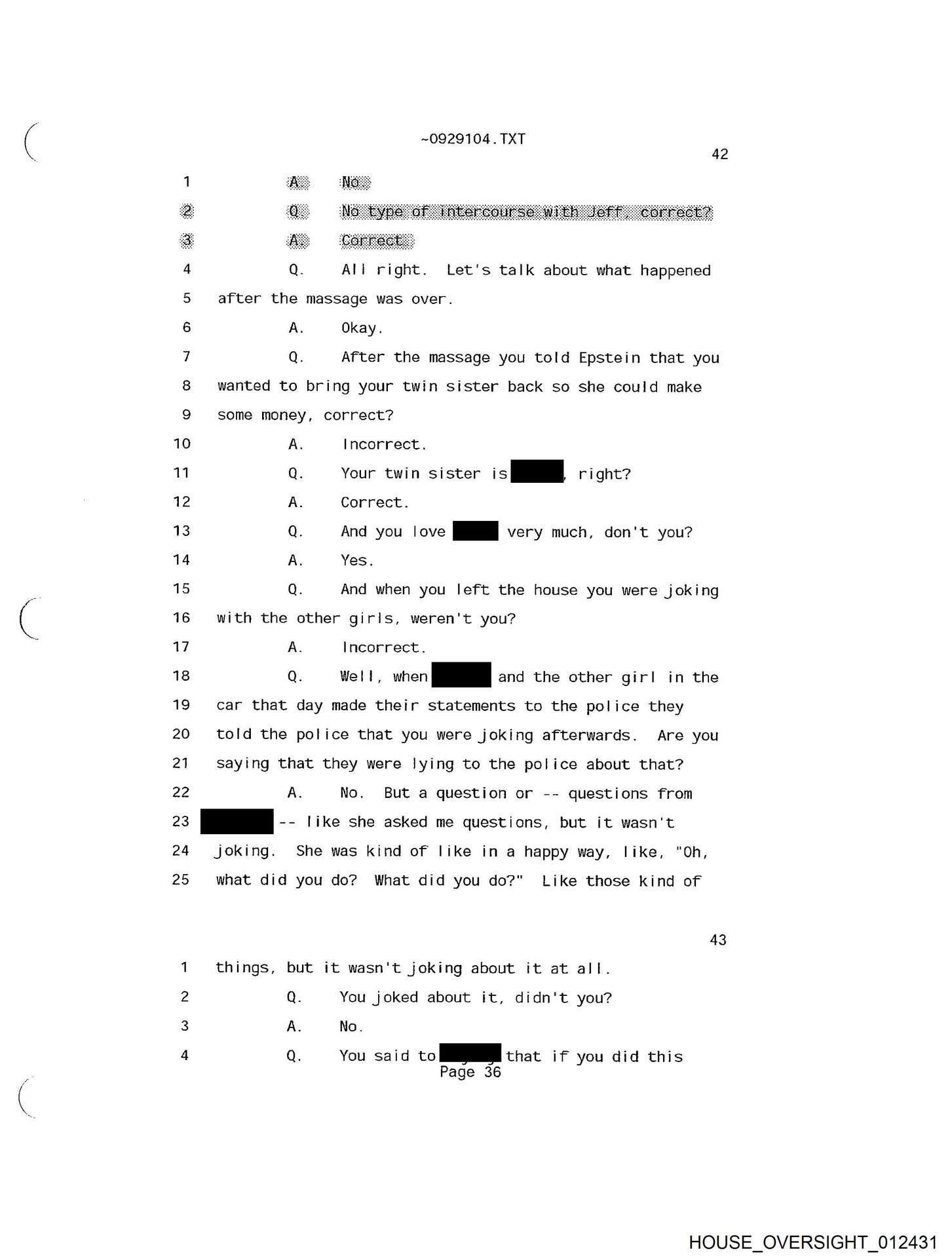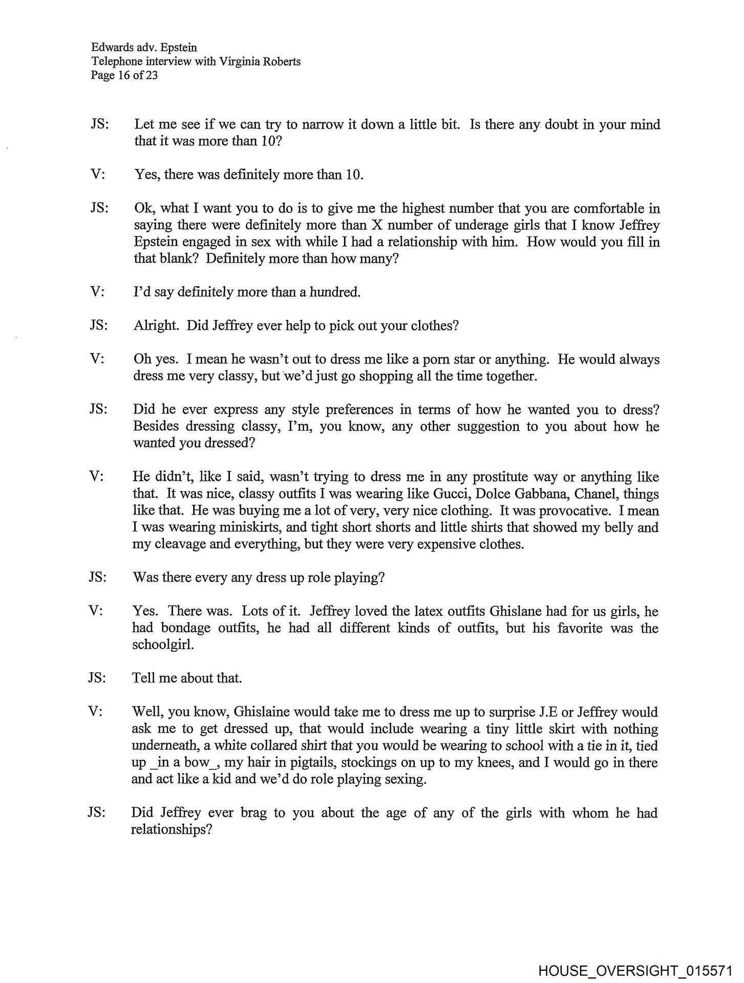 - HOUSE_OVERSIGHT_012122… role playing? V: Yes. There was. Lots of it. Jeffrey loved the latex outfits Ghislane had for us girls, he had …