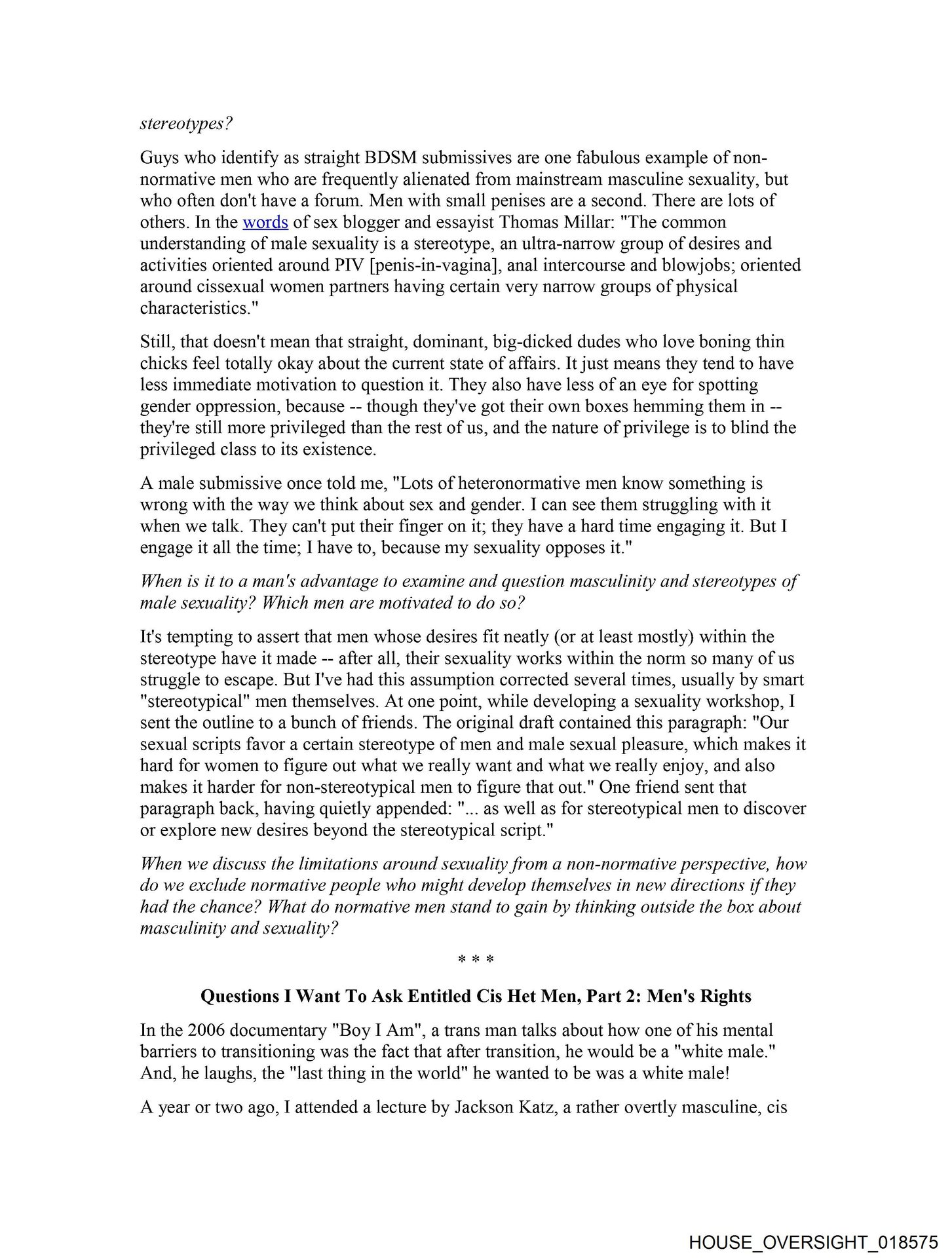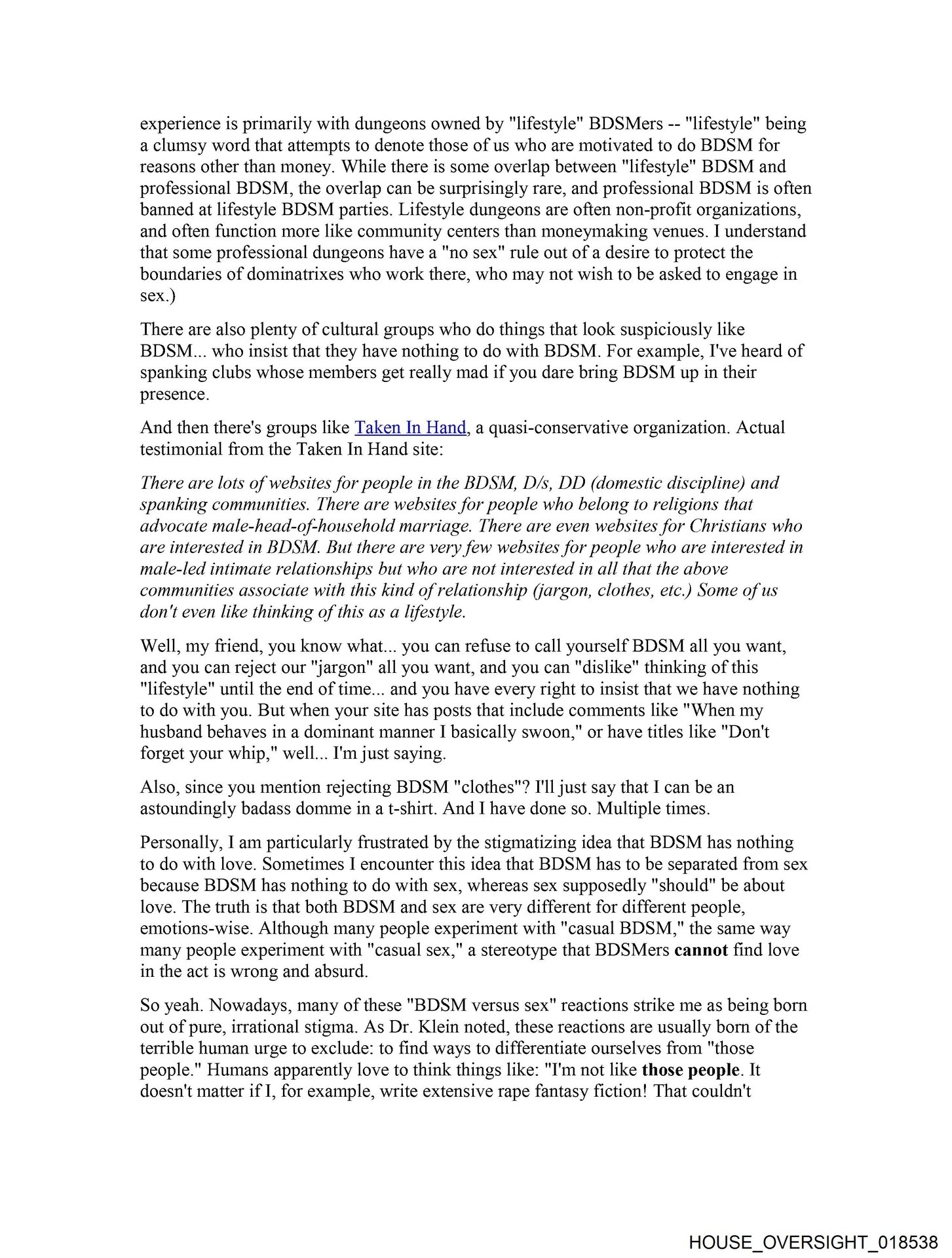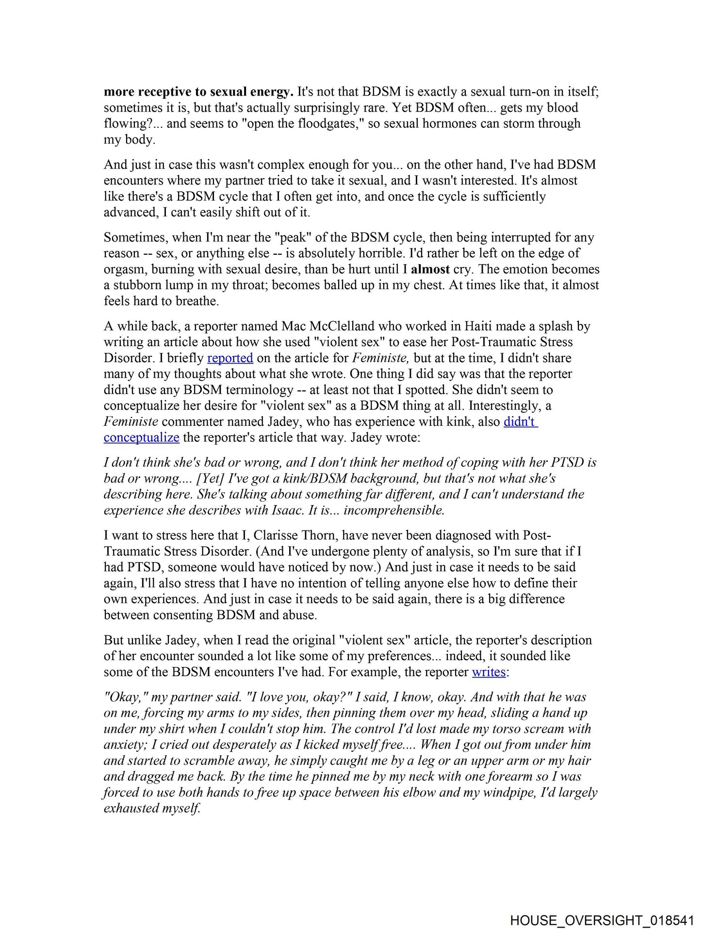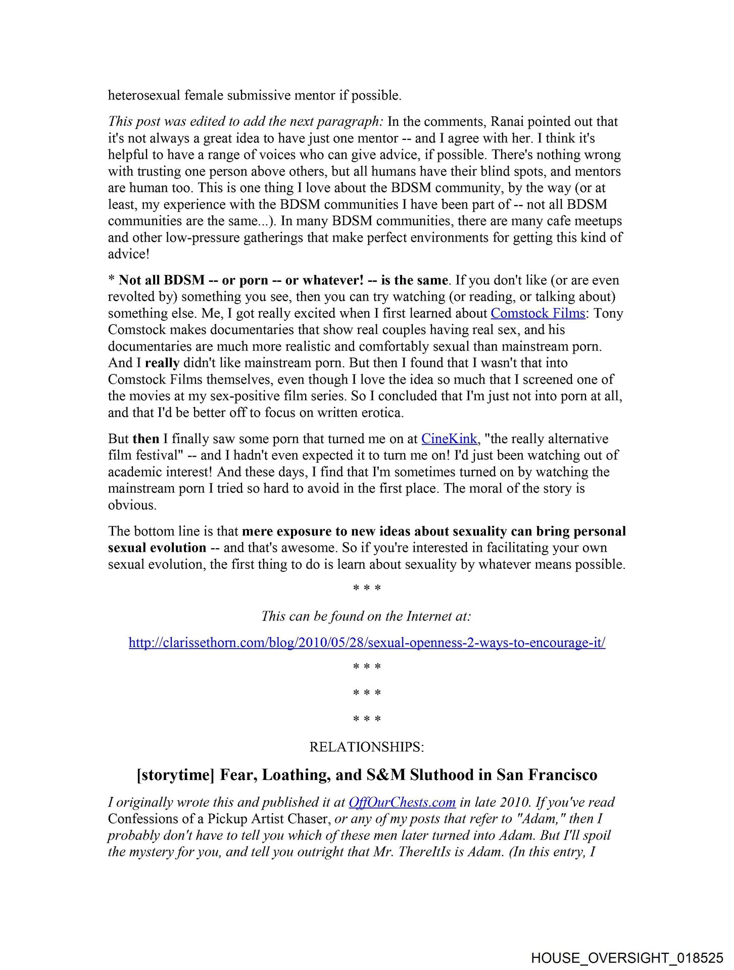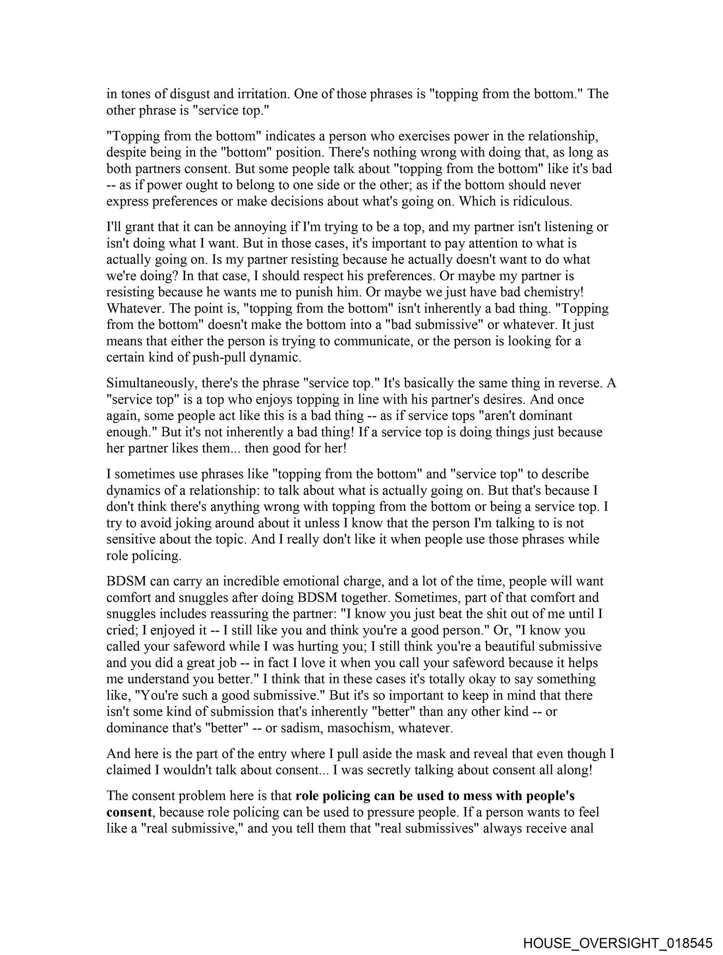 - HOUSE_OVERSIGHT_012122… role playing? V: Yes. There was. Lots of it. Jeffrey loved the latex outfits Ghislane had for us girls, he had …