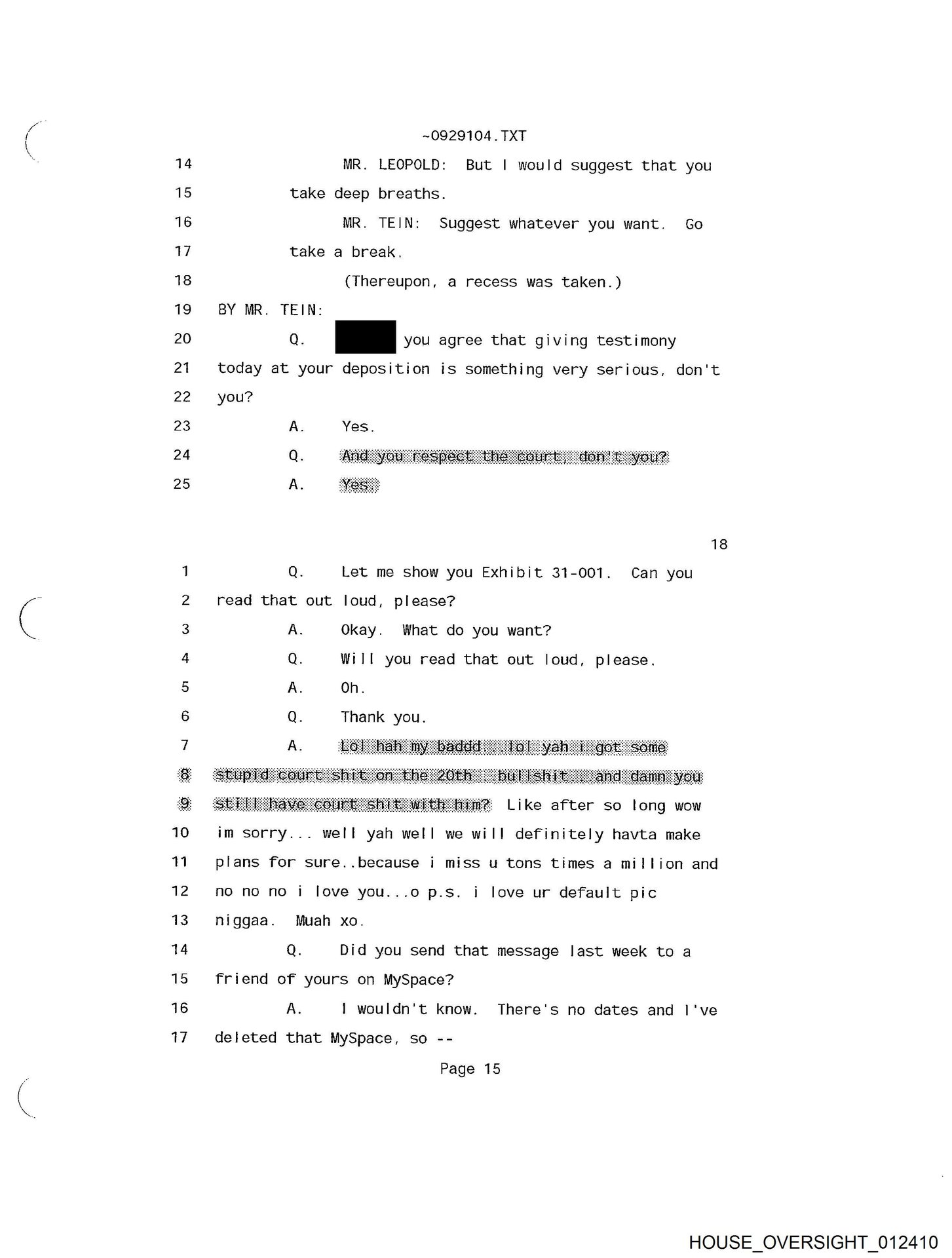 - HOUSE_OVERSIGHT_010808… my 14 inappropriate, which is exactly what you asked 15) gloves on and pick them up, put them in the 15 …