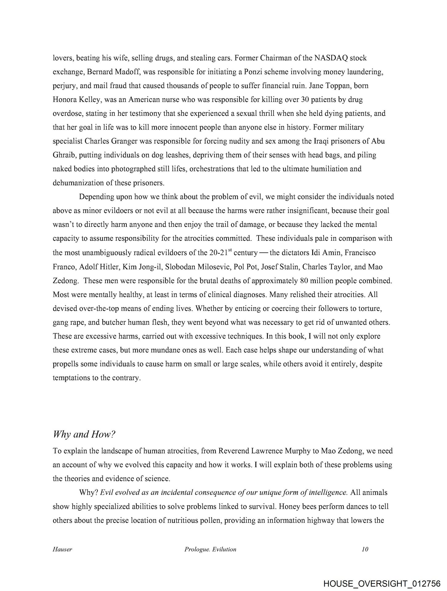 - HOUSE_OVERSIGHT_012762… capacity for evil is as great as our capacity for love and compassion. Evil is part of human nature, a capacity …