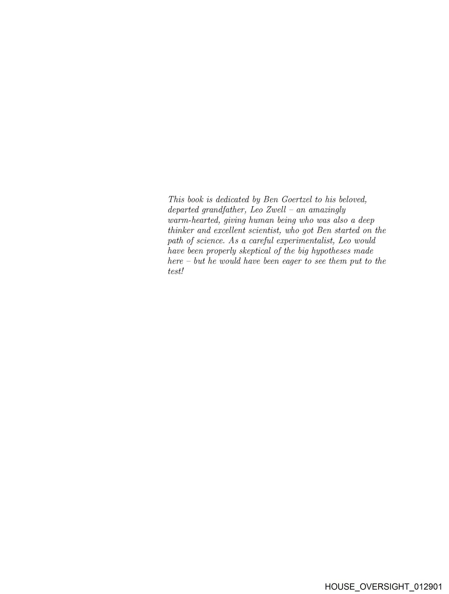 - HOUSE_OVERSIGHT_012901This book is dedicated by Ben Goertzel to his beloved, departed grandfather, Leo Zwell — an amazingly warm-hearted, giving human …