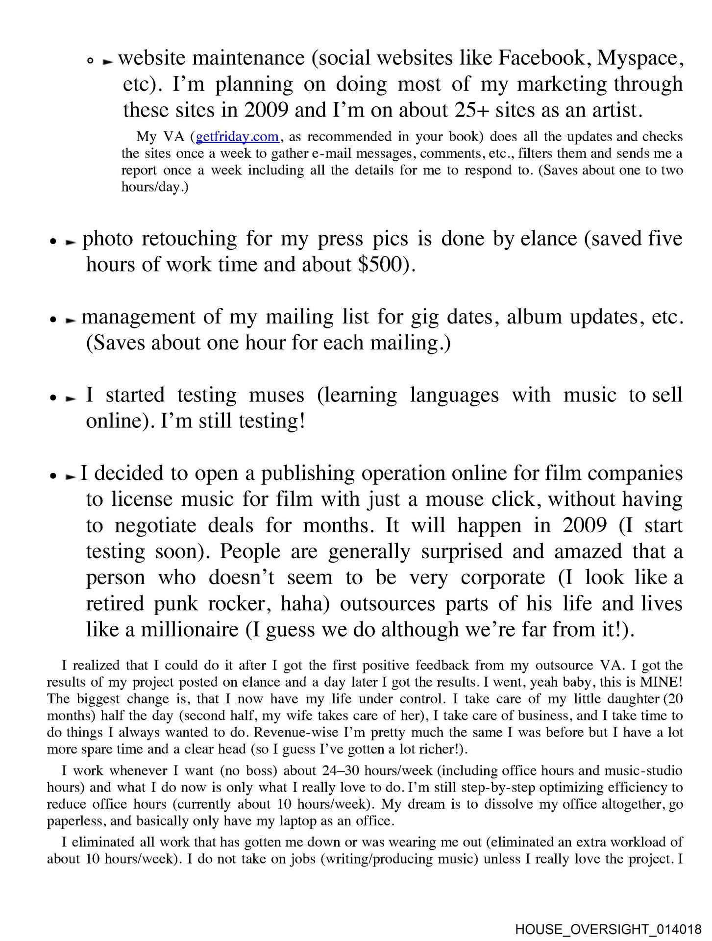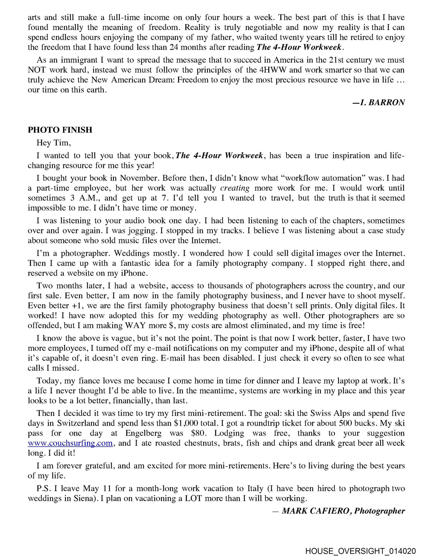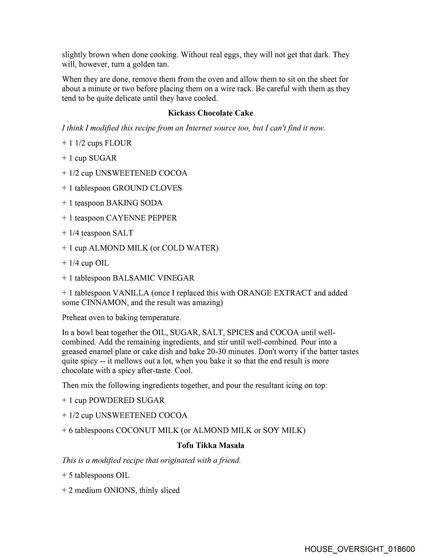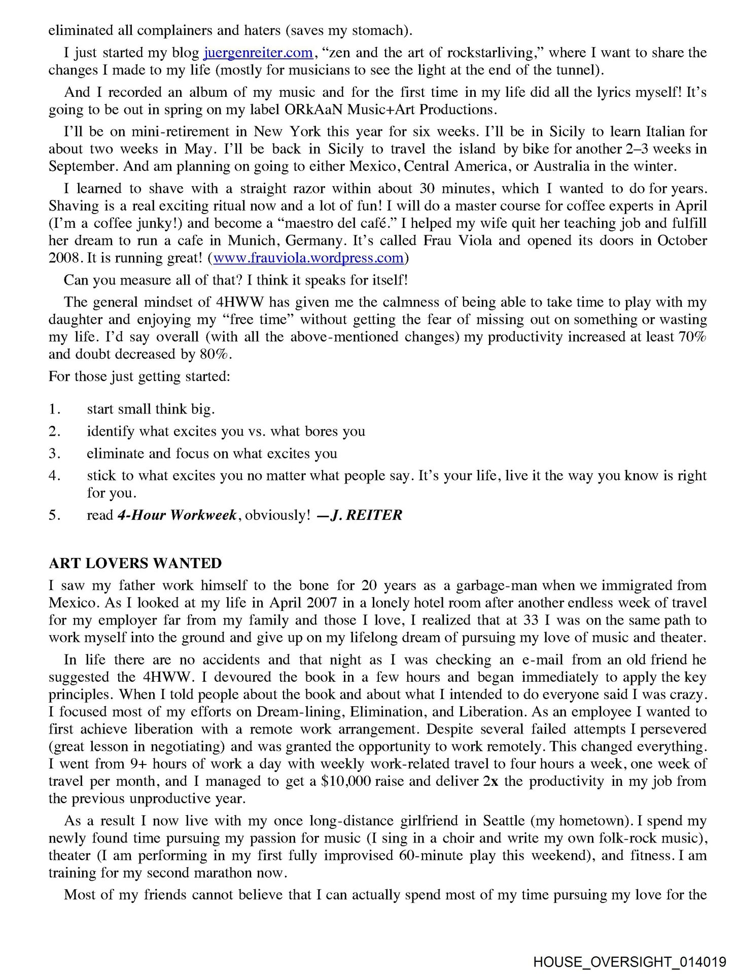 - HOUSE_OVERSIGHT_012858… we have five pets — open a restaurant — I love to cook — and be an Olympian in gymnastics — …