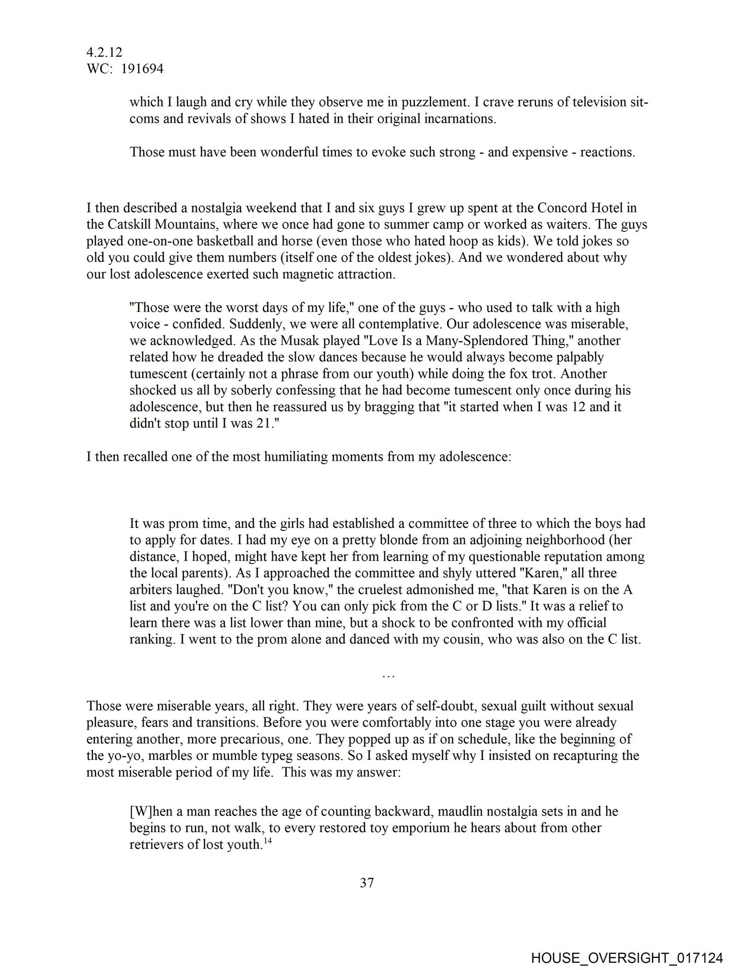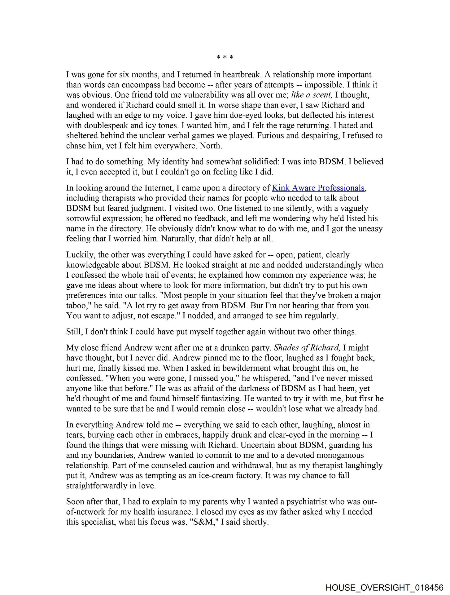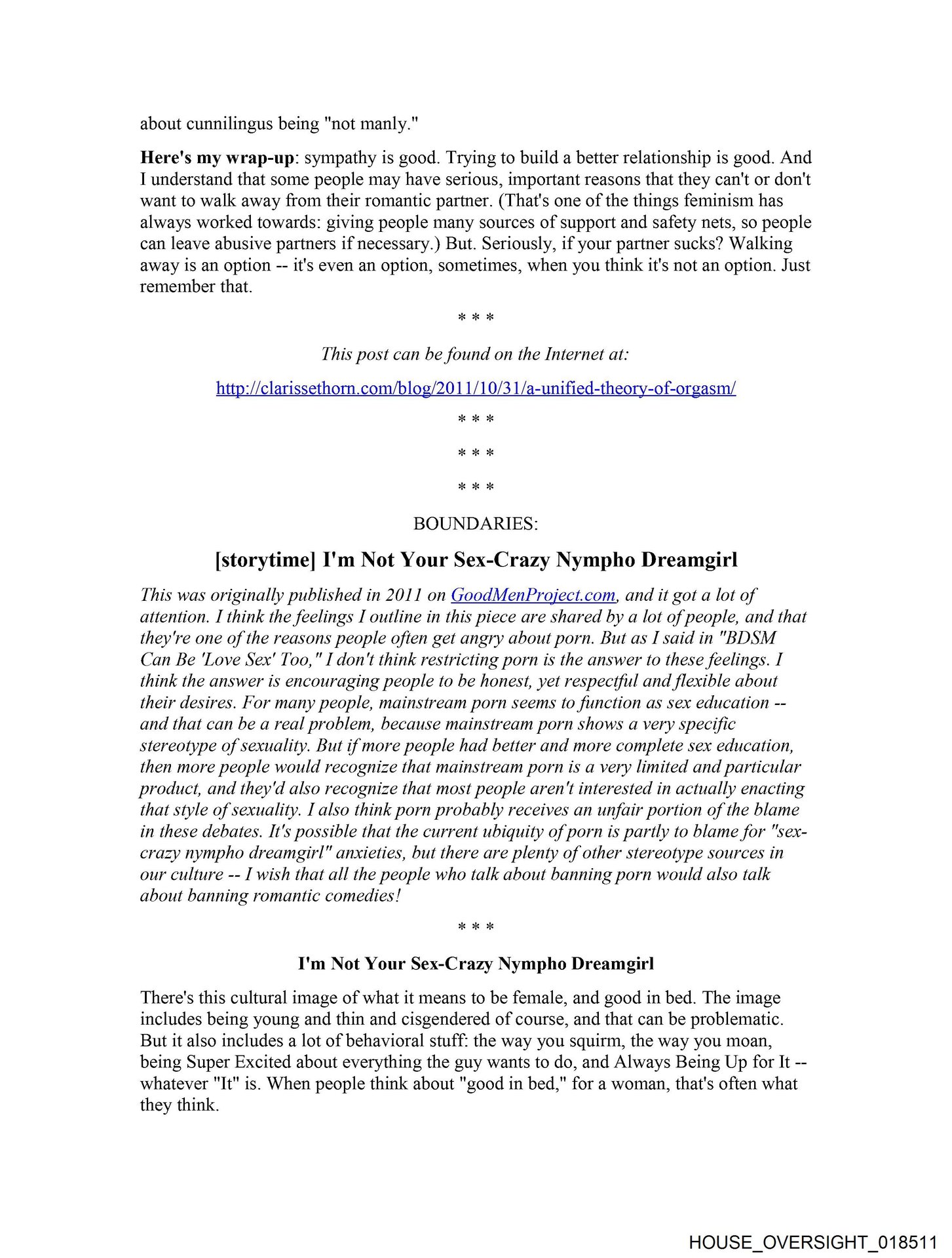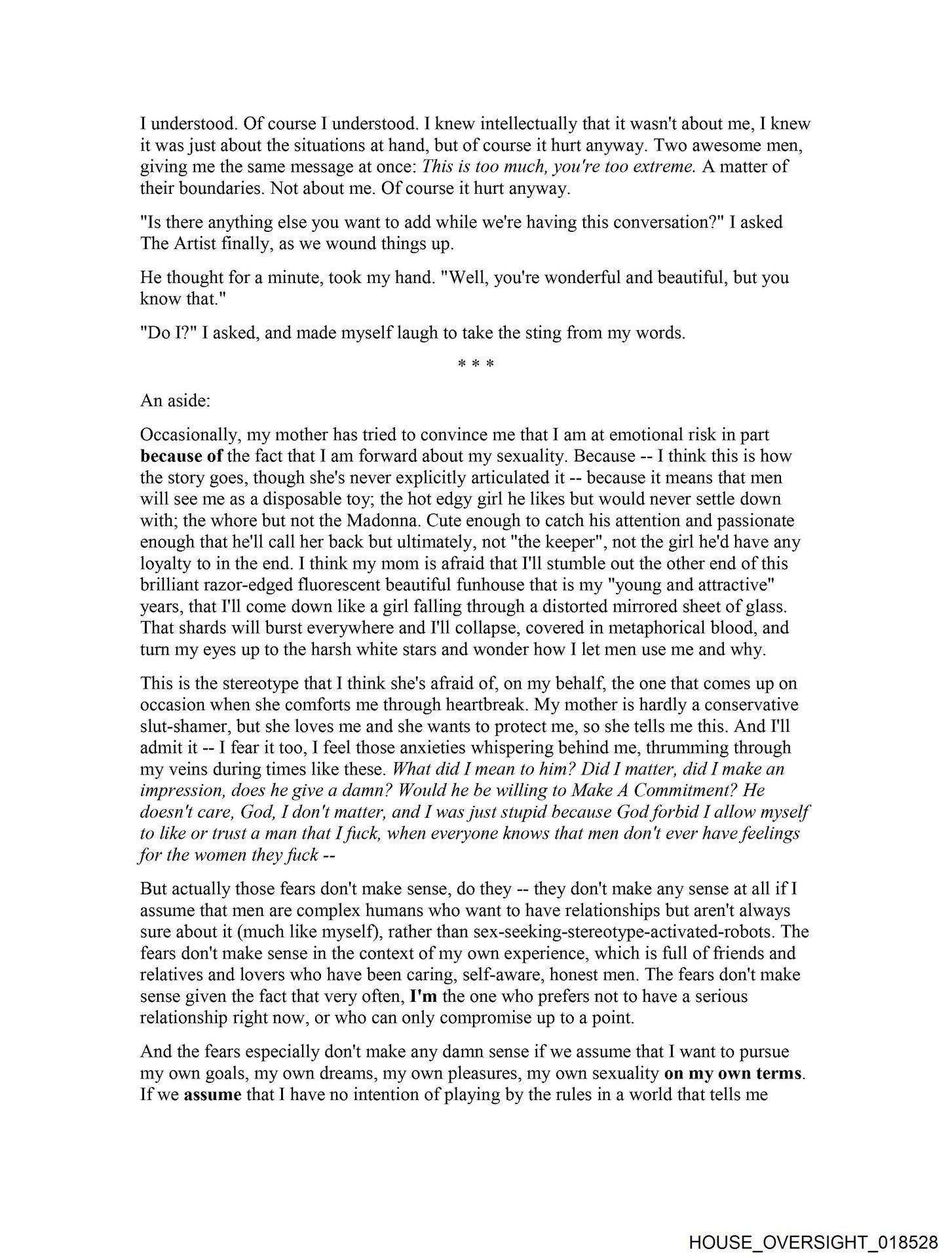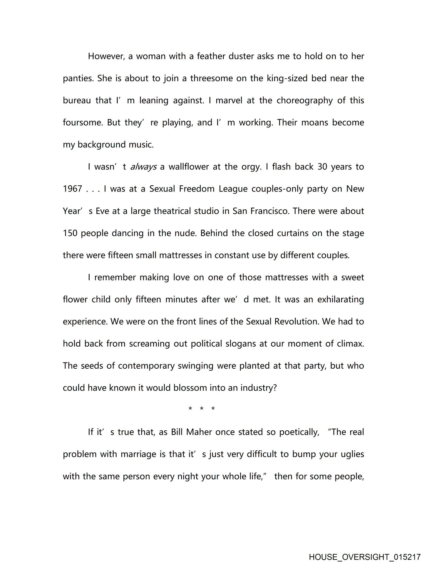 - HOUSE_OVERSIGHT_012802… desire to stampede reason. As the essayist James Thurber remarked, “Love is blind, but desire just doesn’t give a good goddamn.” …