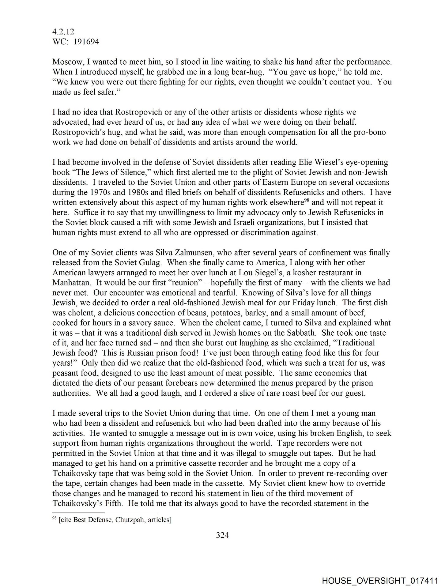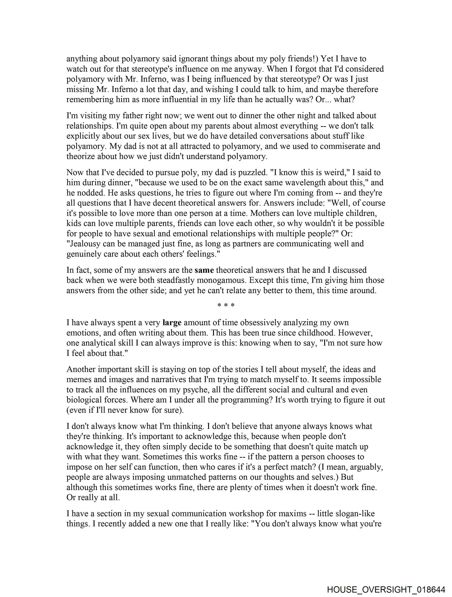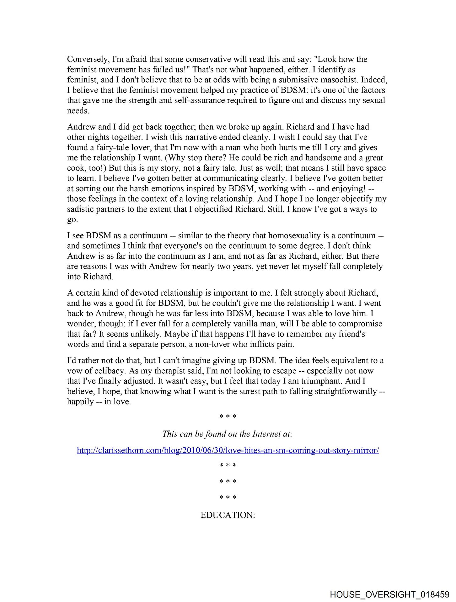 - HOUSE_OVERSIGHT_011495… than herself — her belief that politics mattered. Also her love for art and literature. When I would come home from …