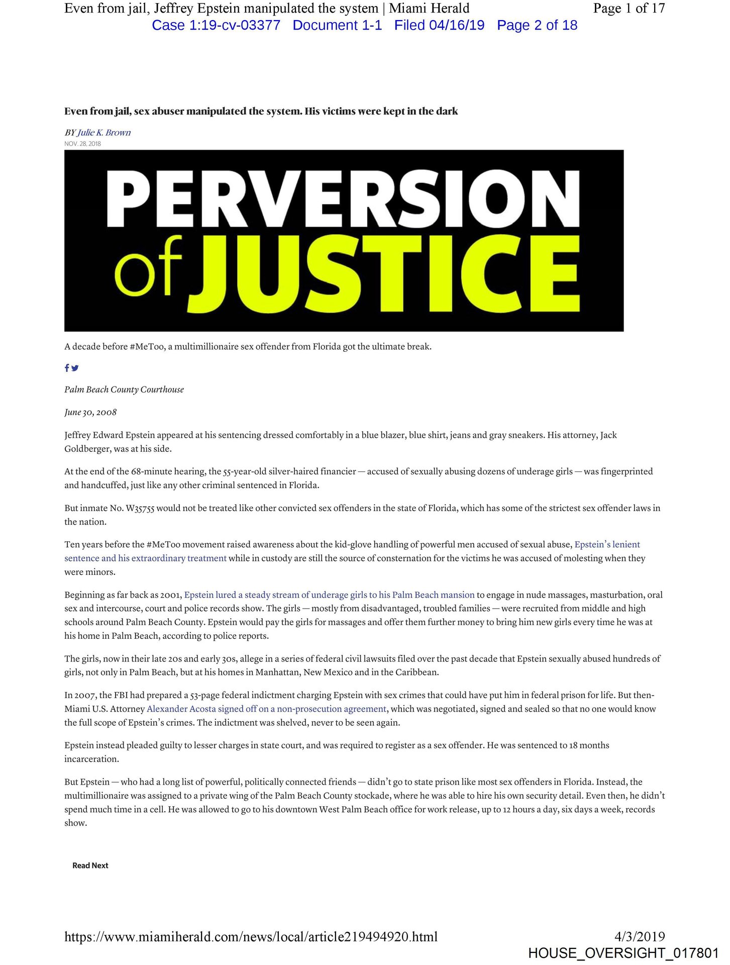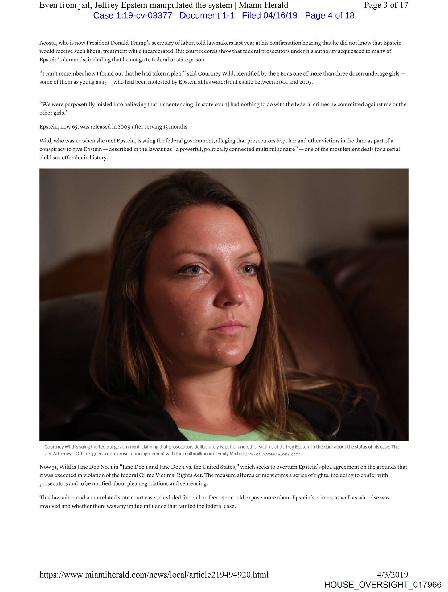 - HOUSE_OVERSIGHT_023130… Epstein and some of his co-conspirators. One of those victims, Courtney Wild, told the Herald that she brought at least 6o …