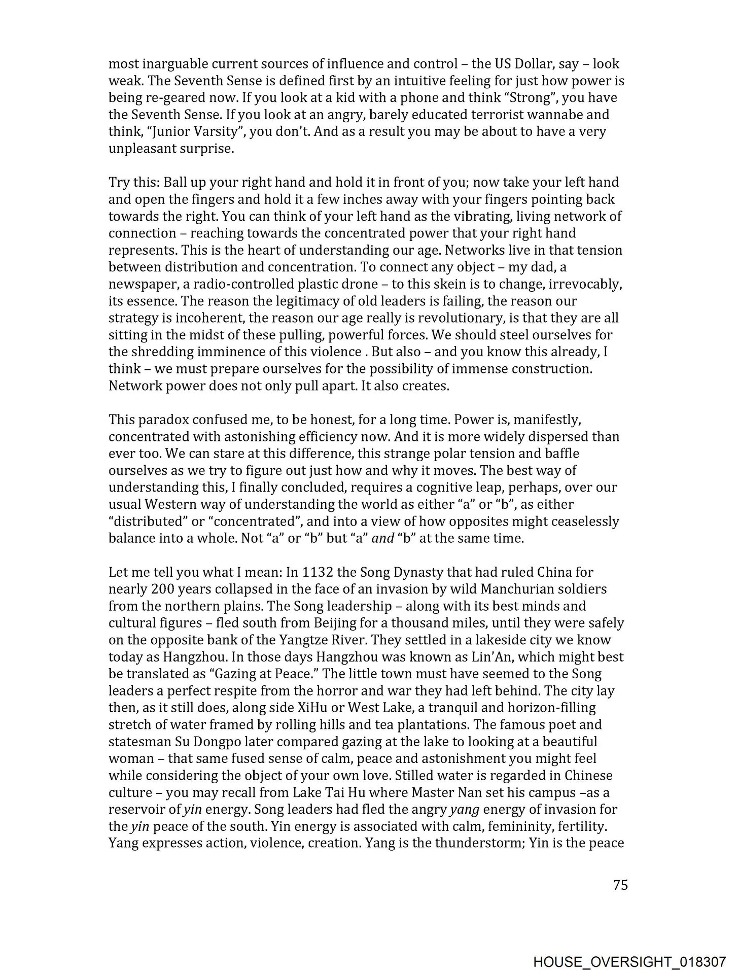 - HOUSE_OVERSIGHT_029661… the post-World War II age. This is the US he loves but it is still in retreat. Asked about the nature …