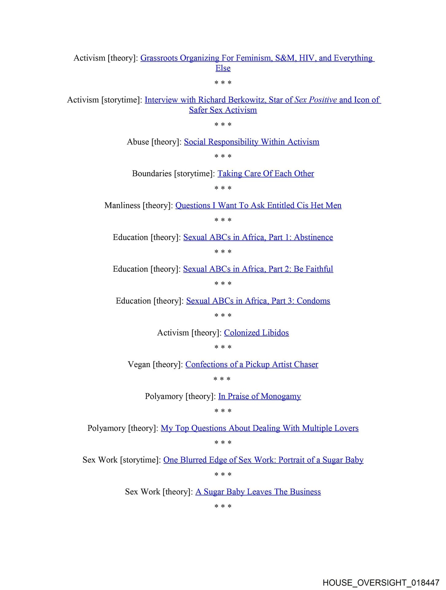 - HOUSE_OVERSIGHT_030871… a sleeping population to counteract the essence of evil with love, laughs, and law, fueled by the aid of true news. …