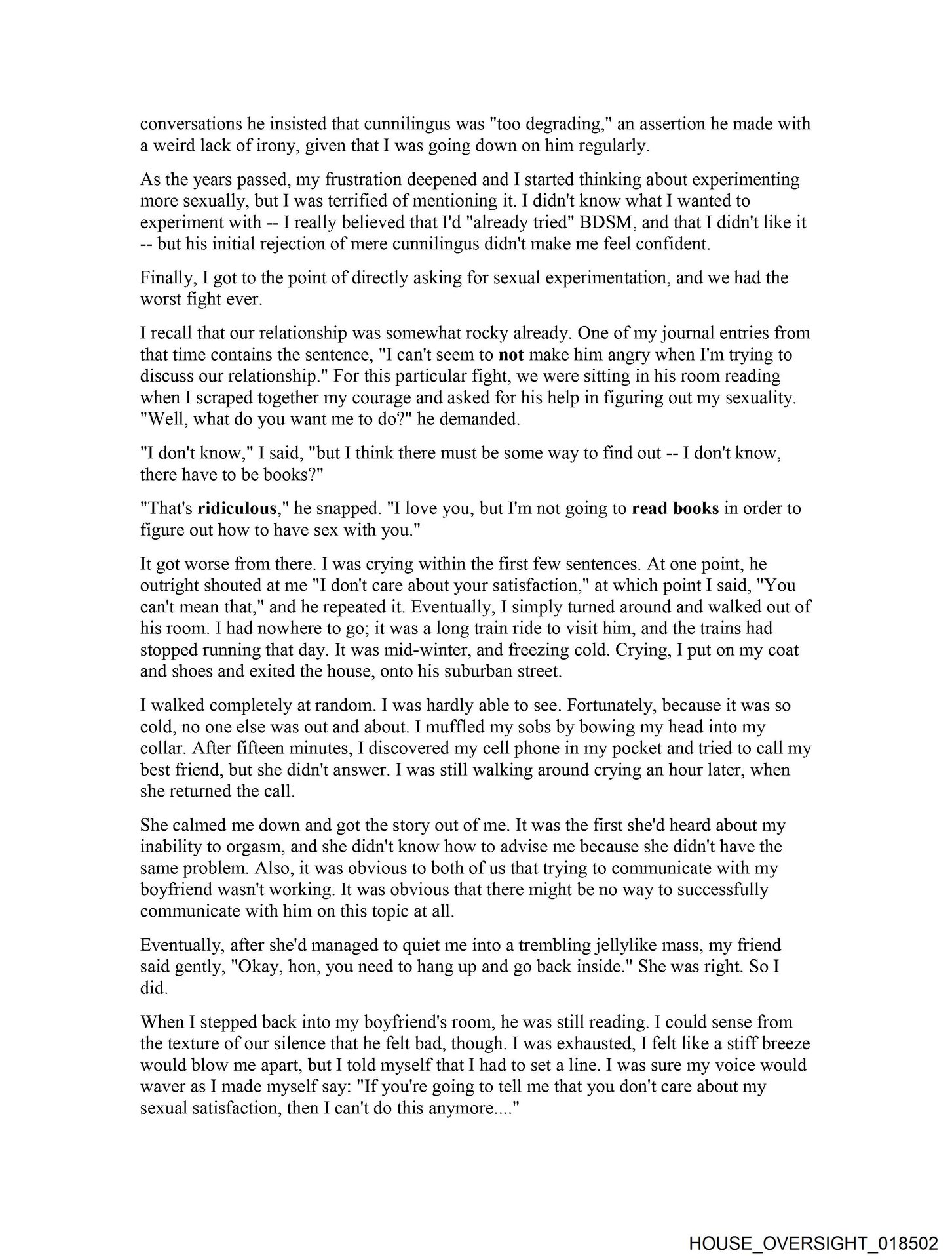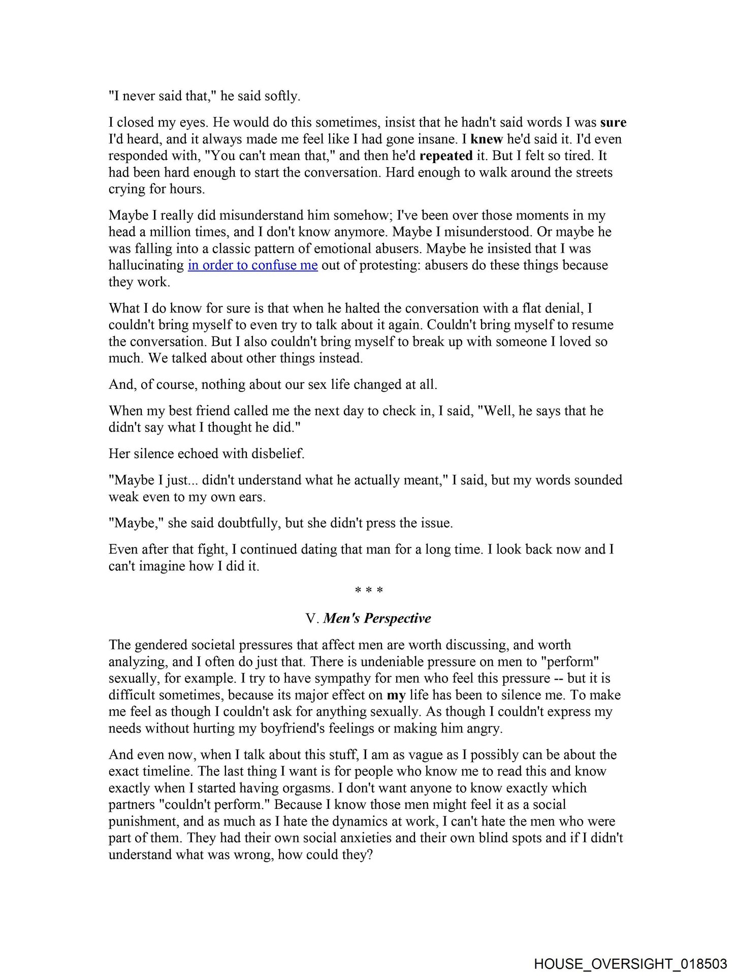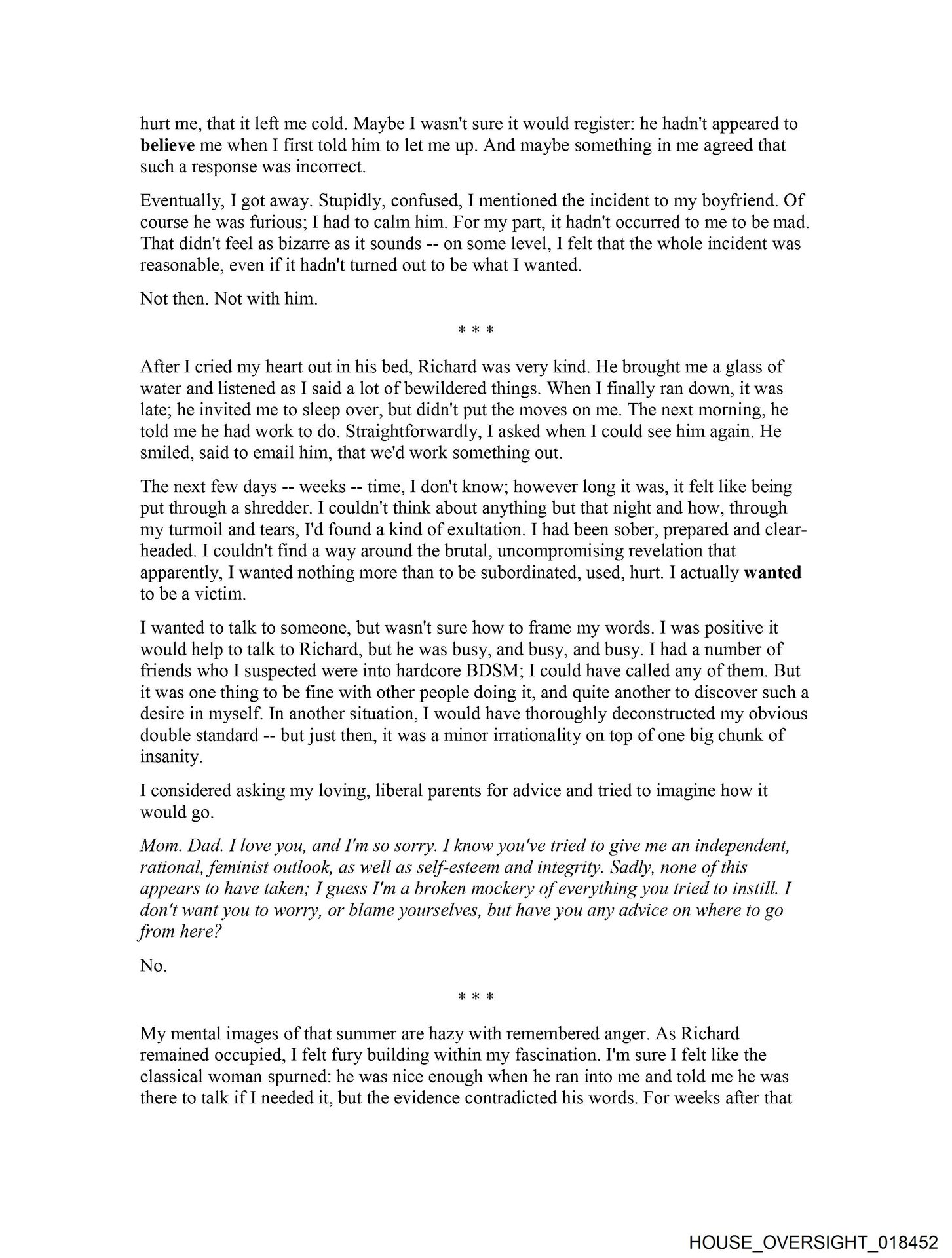 - HOUSE_OVERSIGHT_012831… had been driving with her? Was she distracted by her lover? Was he in the car? These questions represent gaps in …