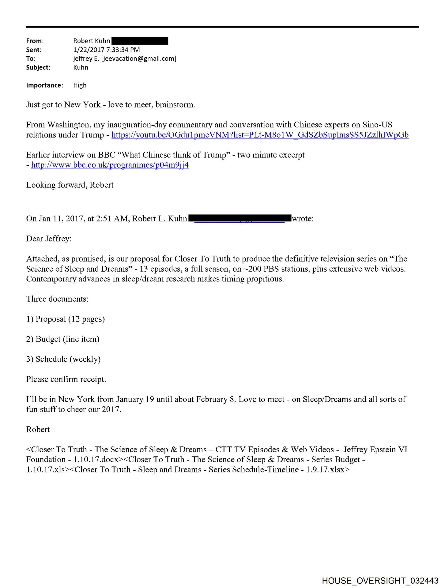 One draft idea for a first episode listed several entertainers and scientists Epstein wanted as potential guests, including:
