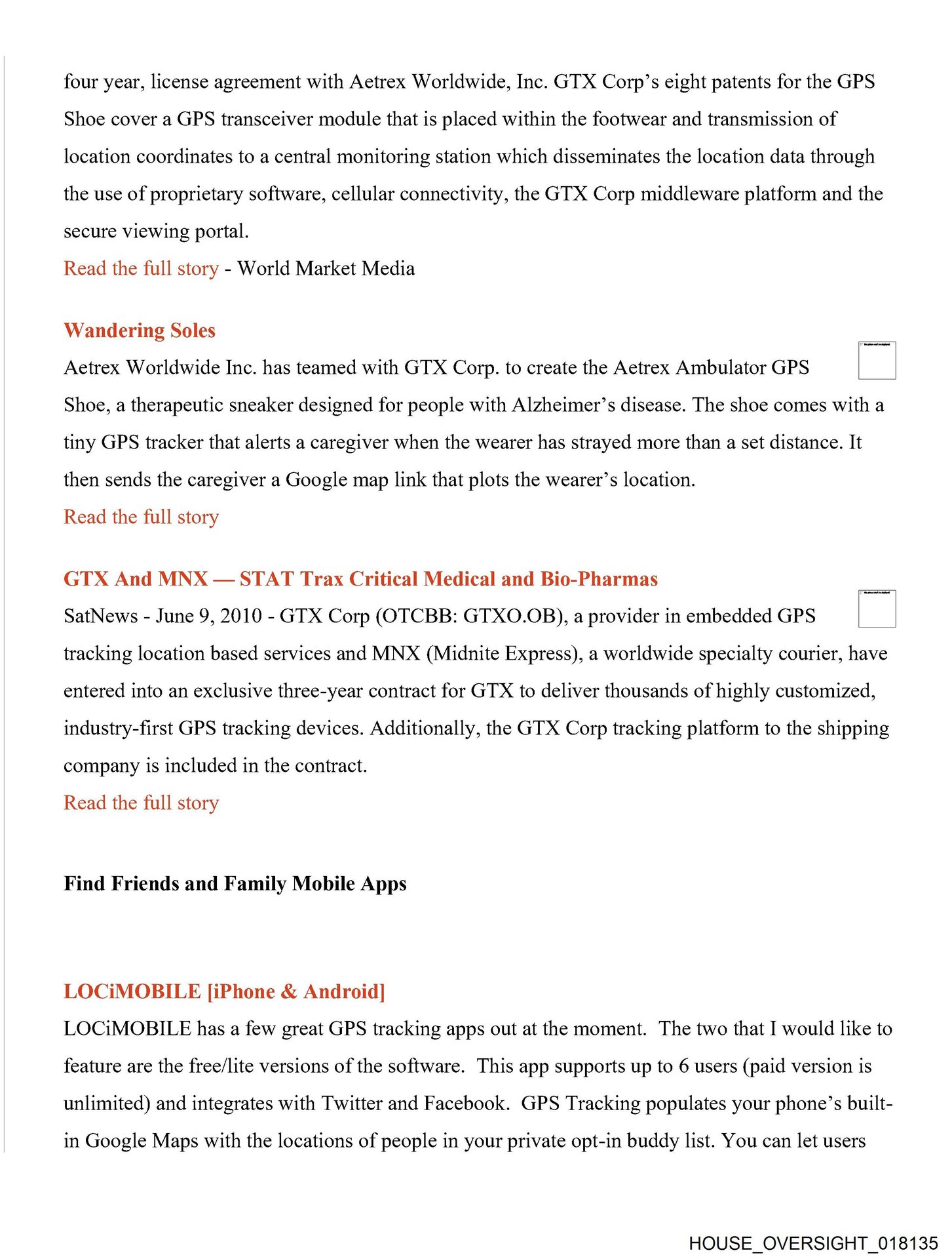 - HOUSE_OVERSIGHT_018135… users (paid version is unlimited) and integrates with Twitter and Facebook. GPS Tracking populates your phone's built- in Google Maps with …