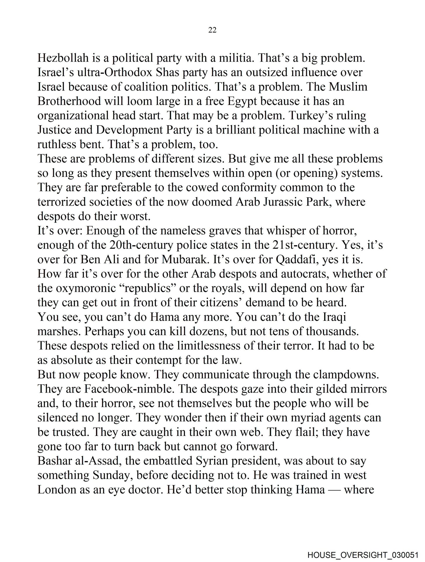 - HOUSE_OVERSIGHT_029083… see what they're putting on Twitter, what they're putting on Facebook, see what's on CNN, what's on BBC. See what's happening, …