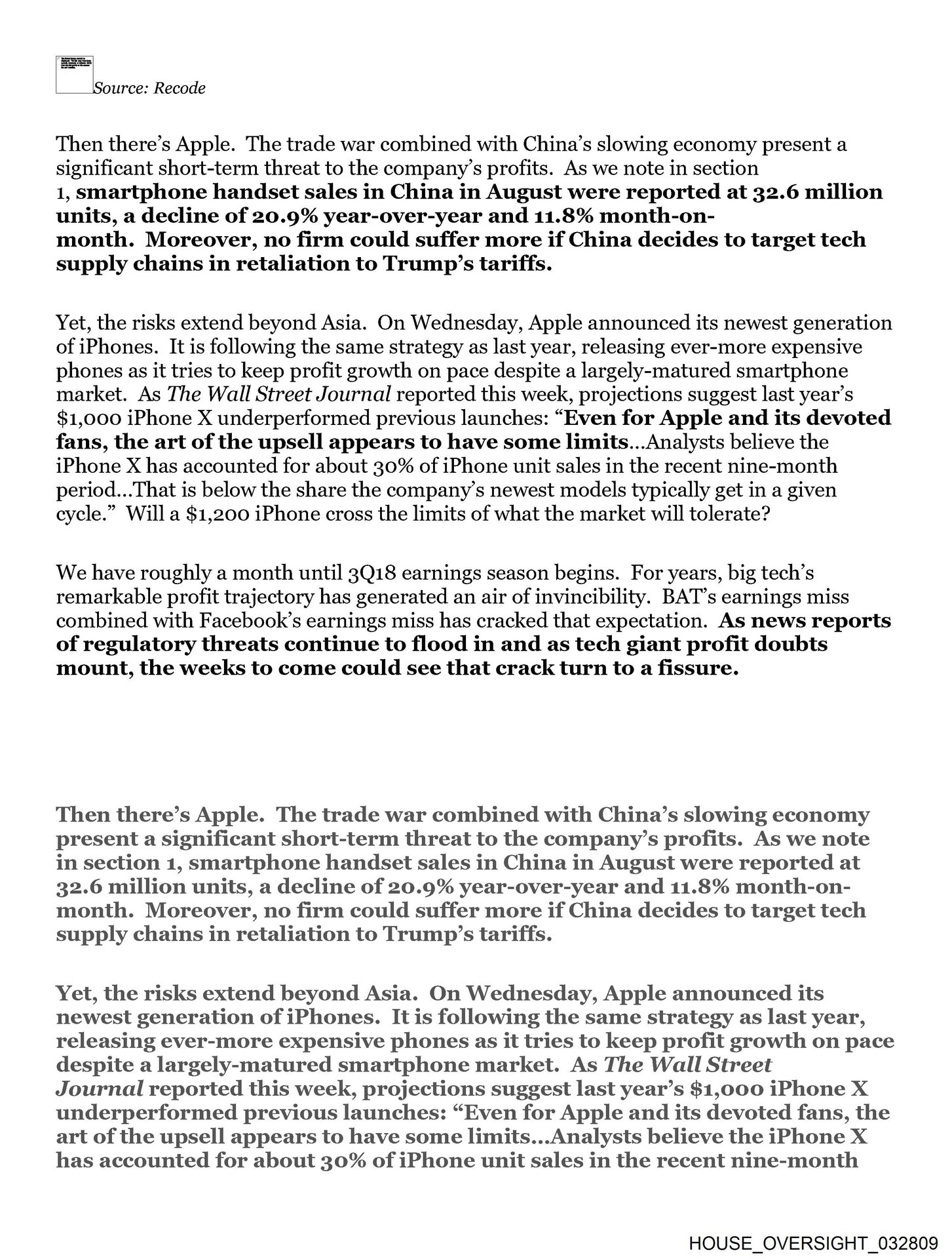 - HOUSE_OVERSIGHT_032806… by subpar earnings and a shifting regulatory environment in China. Facebook's miss in 2Q18—which drove a $120 billion single-day market cap …