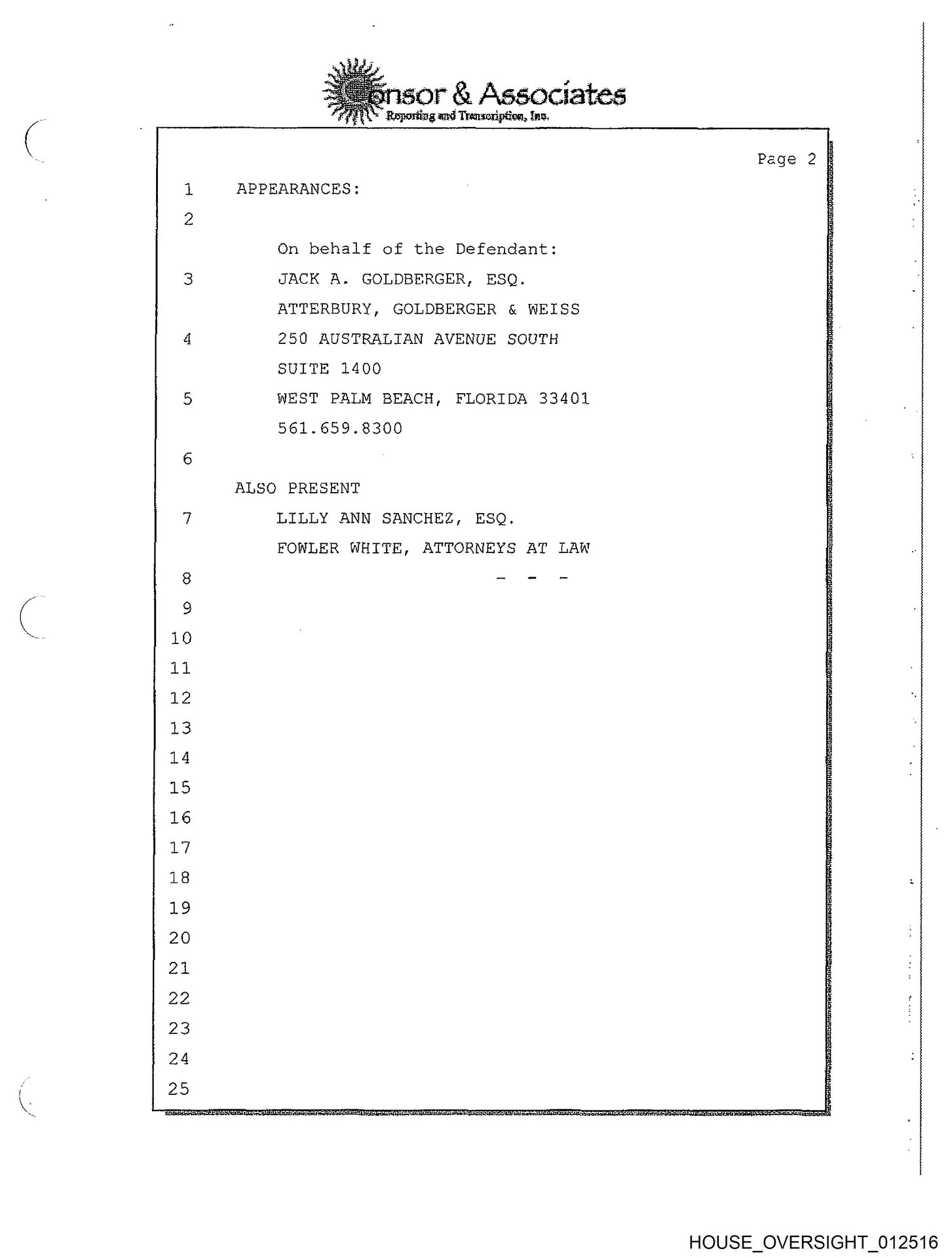 - HOUSE_OVERSIGHT_011323… we would ask you simply to reign a in derogatory language, both from witnesses and opposing 18 counsel. 19 MS. SCHULTZ: …