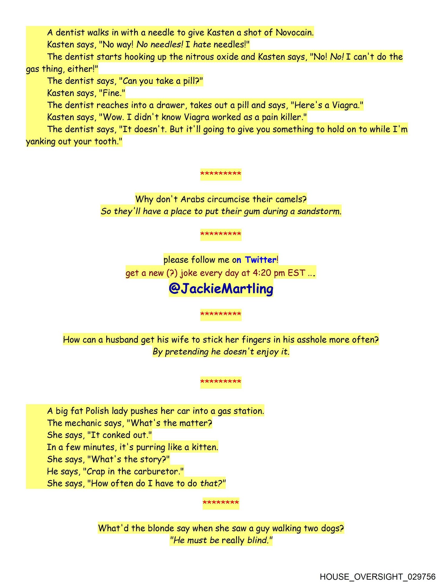 - HOUSE_OVERSIGHT_011322… slut, and they also advise 23 their witnesses that such language would be inappropriate ina 24 federal trial dealing with a …