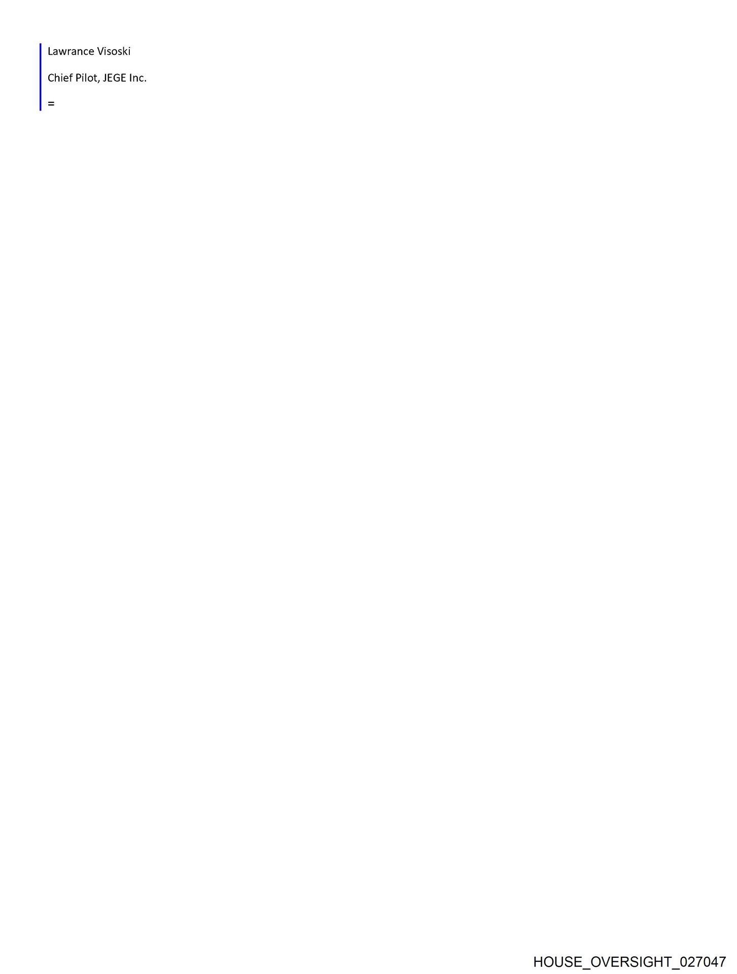 - HOUSE_OVERSIGHT_027047Lawrance Visoski Chief Pilot, JEGE Inc. = HOUSE OVERSIGHT 027047