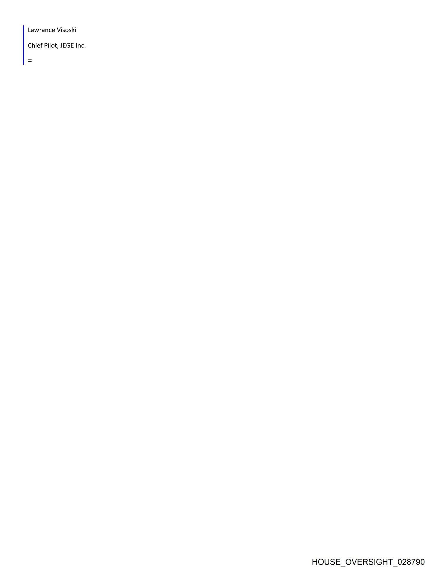 - HOUSE_OVERSIGHT_028790Lawrance Visoski Chief Pilot, JEGE Inc. = HOUSE OVERSIGHT 028790