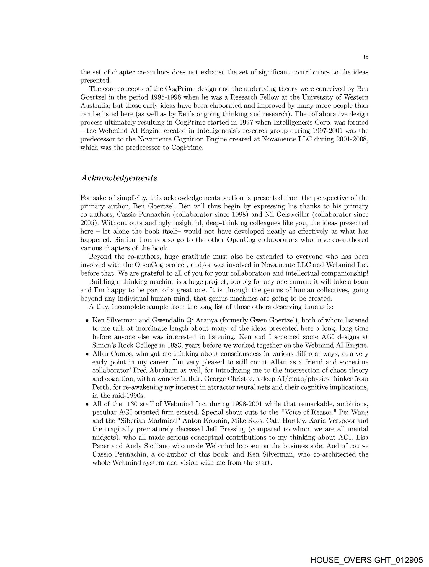 - HOUSE_OVERSIGHT_012905… all made serious conceptual contributions to my thinking about AGI. Lisa Pazer and Andy Siciliano who made Webmind happen on the …