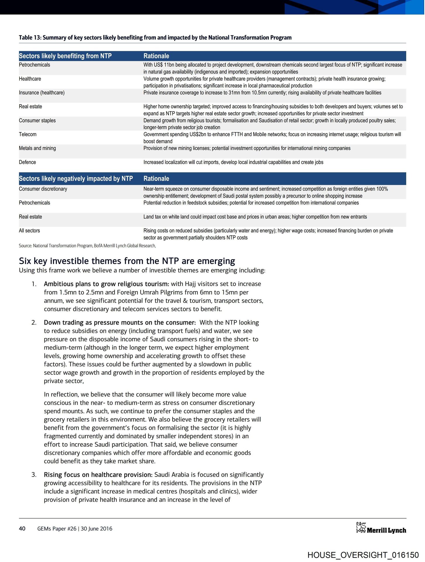- HOUSE_OVERSIGHT_016150… private sector investment Consumer staples Demand growth from religious tourists; formalisation and Saudisation of retail sector; growth in locally produced poultry …