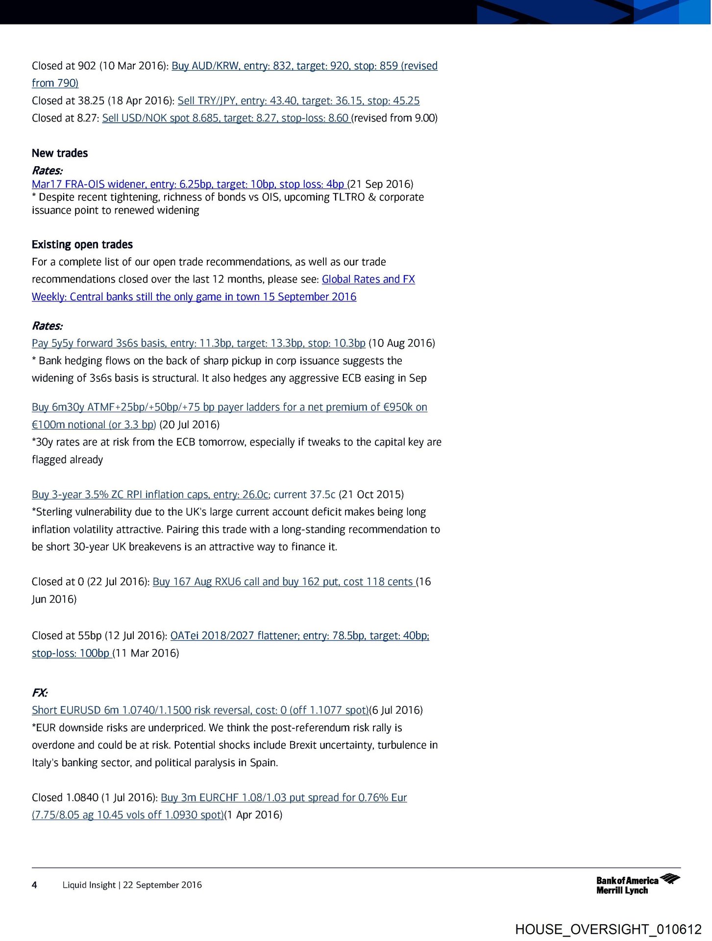 - HOUSE_OVERSIGHT_010612… stop loss: 4bp (21 Sep 2016} * Despite recent tightening, richness of bonds vs OIS, upcoming TLTRO & corporate issuance point …