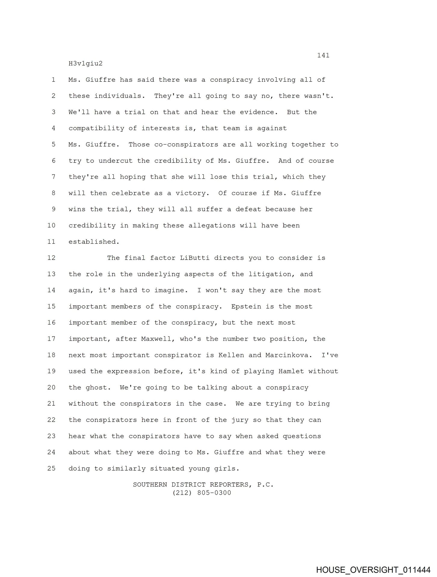 - HOUSE_OVERSIGHT_011348… Okay. It's the one in which 5 Ms. Giuffre, on March 5th, 2011, gave a long and lengthy 6 interview to …