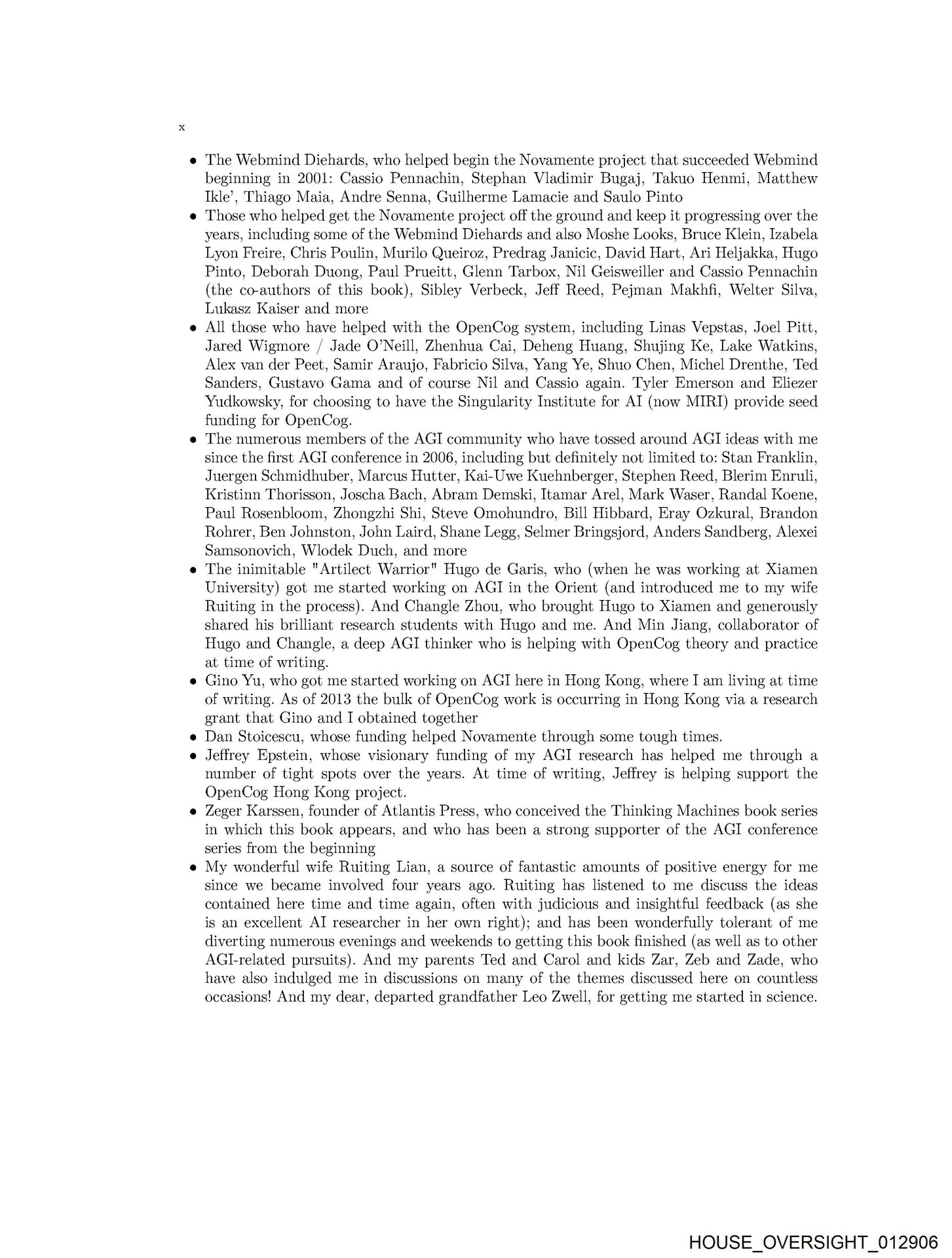 - HOUSE_OVERSIGHT_012906… beginning in 2001: Cassio Pennachin, Stephan Vladimir Bugaj, Takuo Henmi, Matthew Tkle’, Thiago Maia, Andre Senna, Guilherme Lamacie and Saulo Pinto …