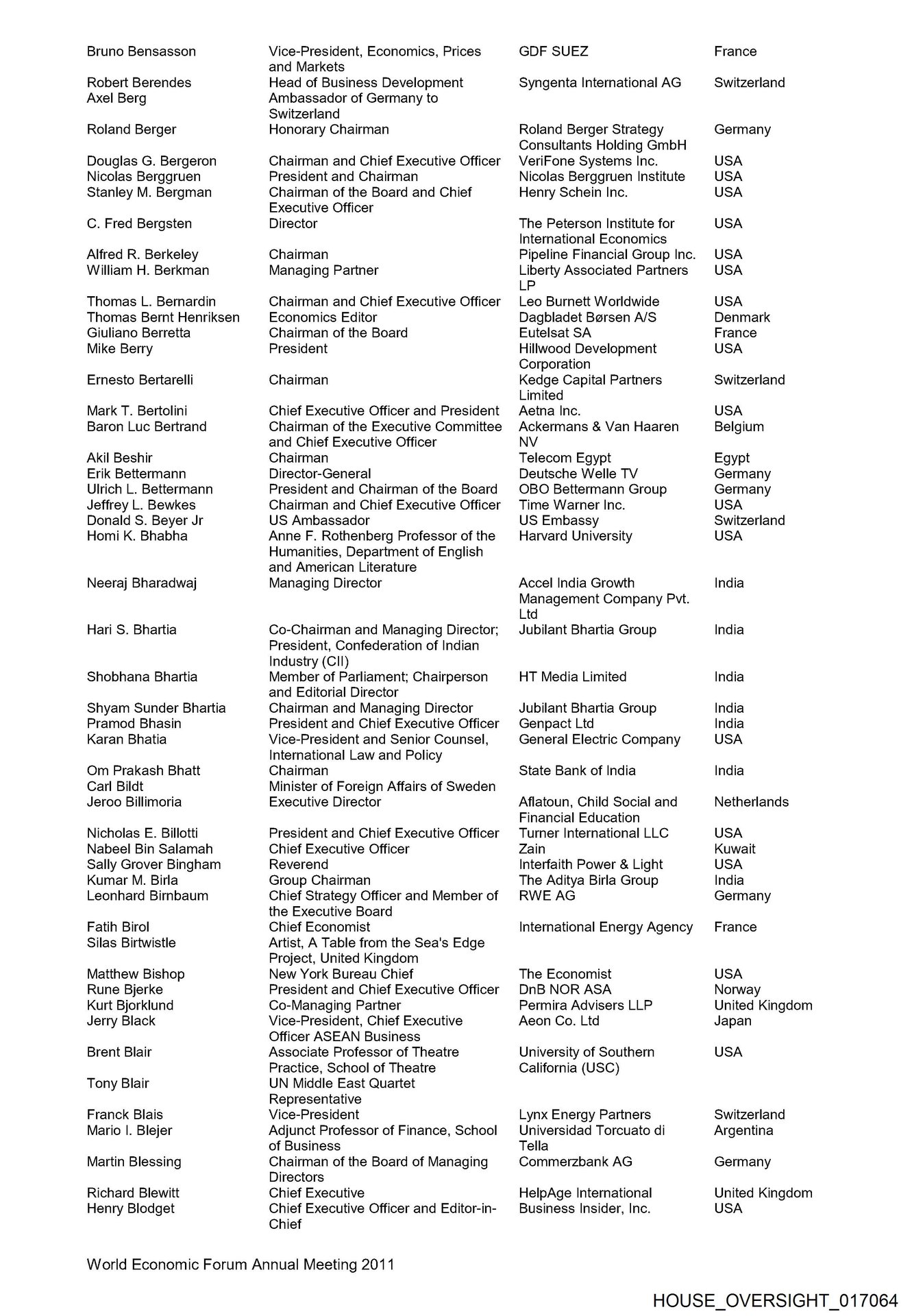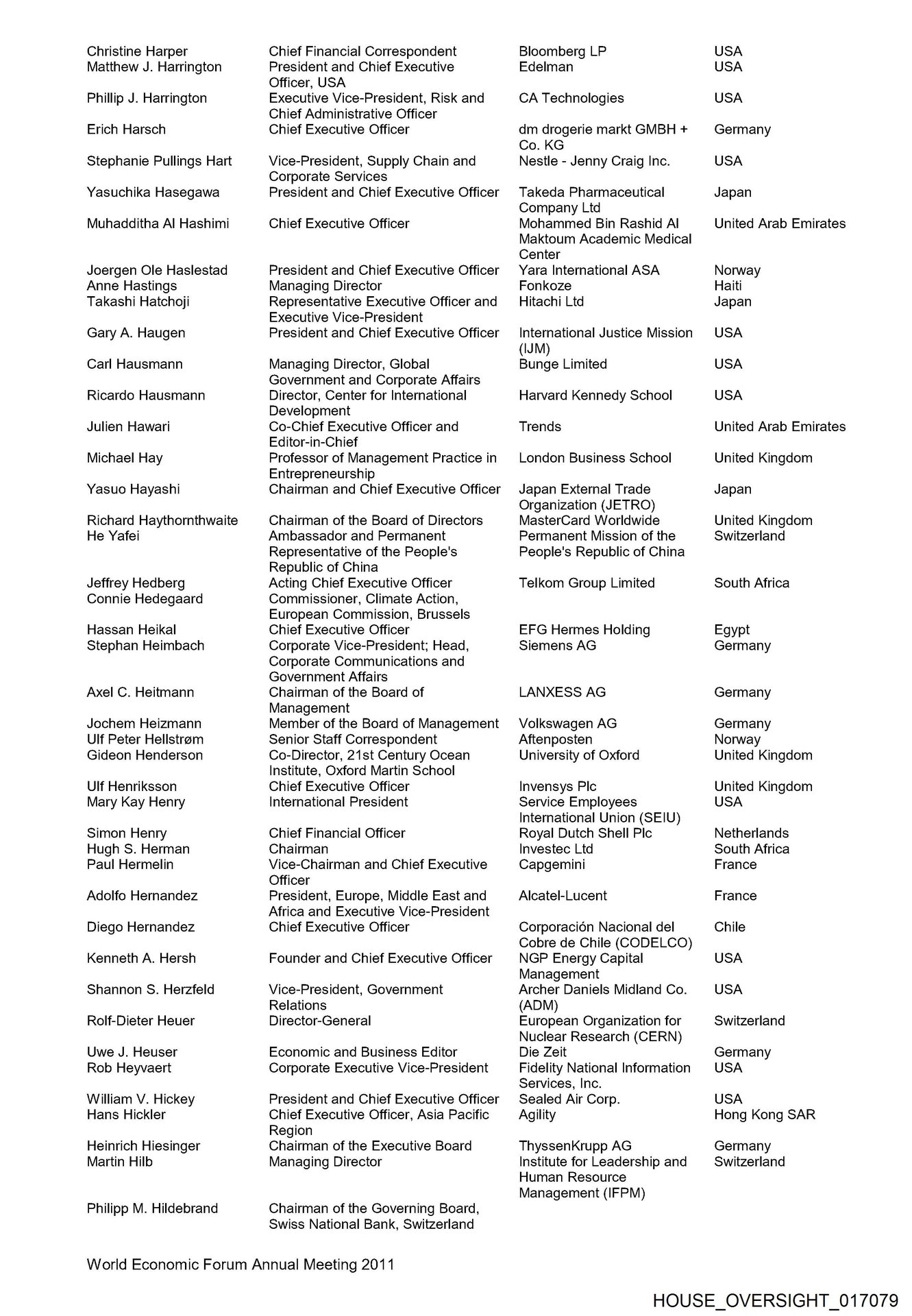 - HOUSE_OVERSIGHT_017079Christine Harper Chief Financial Correspondent Bloomberg LP USA Matthew J. Harrington President and Chief Executive Edelman USA Officer, USA …
