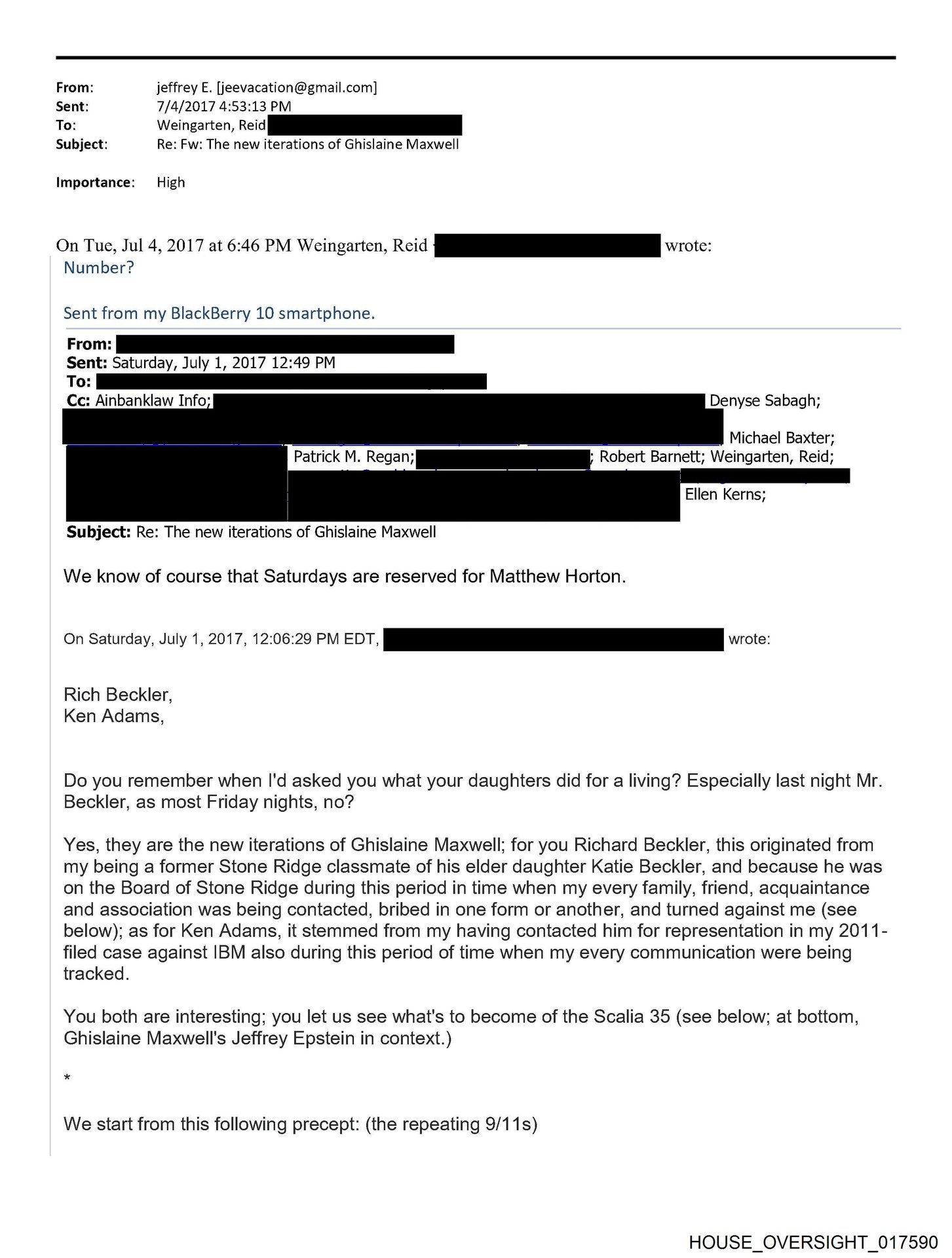 - HOUSE_OVERSIGHT_015002… Maxwell We know of course that Saturdays are reserved for Matthew Horton. On Saturday, July 1, 2017, 12:06:29 PM EDT, wrote: …