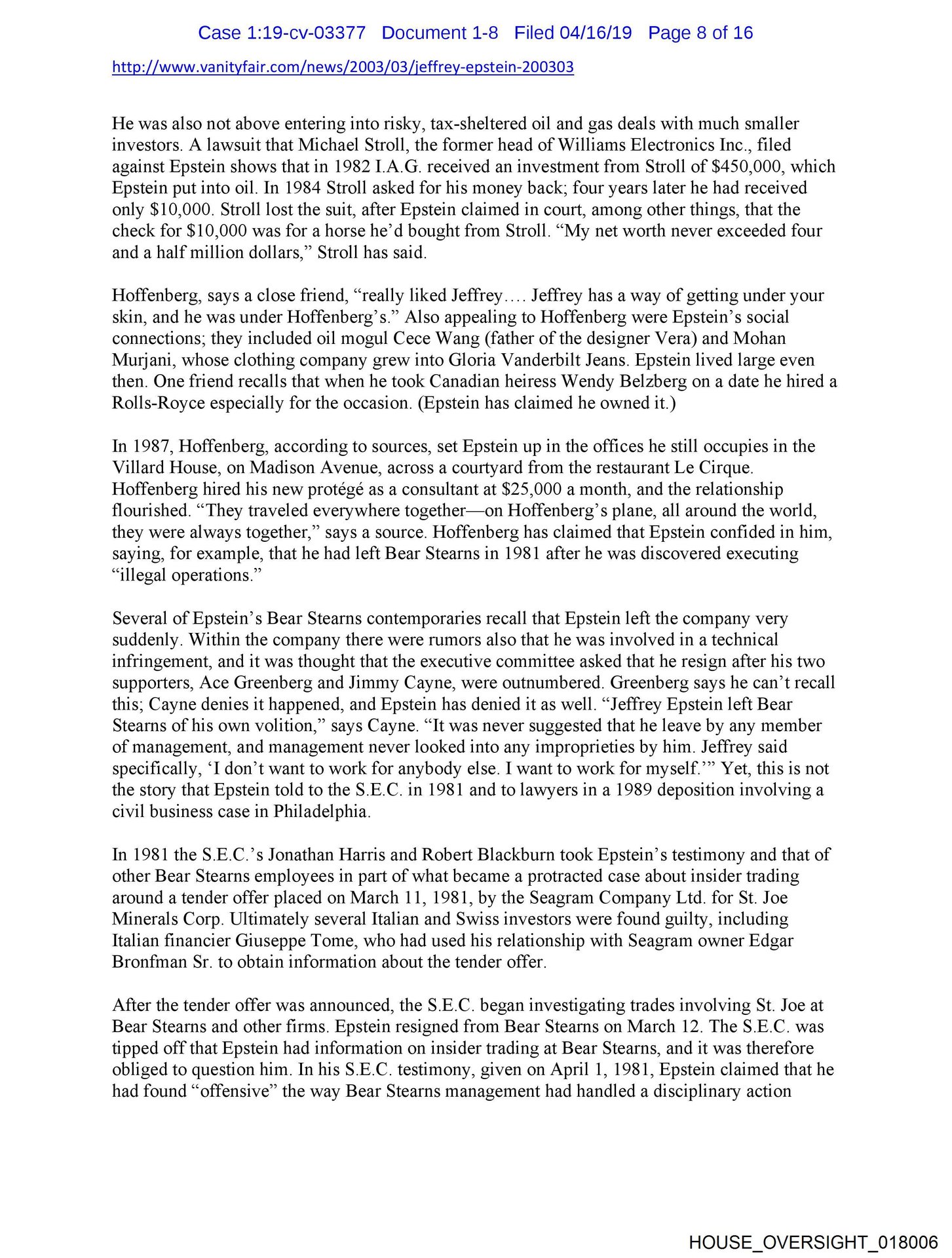 - HOUSE_OVERSIGHT_030315From: Matthew Hiltzik Sent: 12/15/2018 6:40:52 PM To: Michael Wolff CC: Jeffrey …