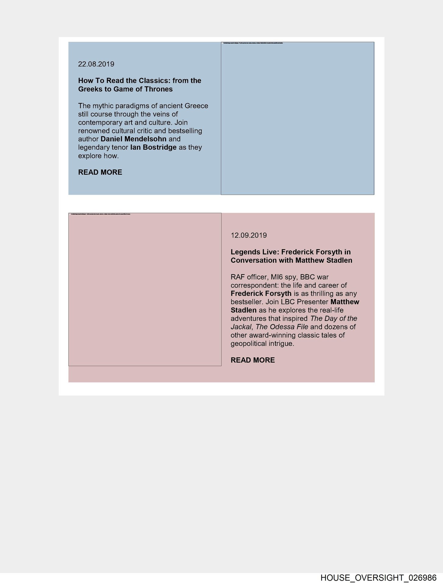 - HOUSE_OVERSIGHT_026986… READ MORE 12.09.2019 Legends Live: Frederick Forsyth in Conversation with Matthew Stadlen RAF officer, MI6 spy, BBC war correspondent: the life …
