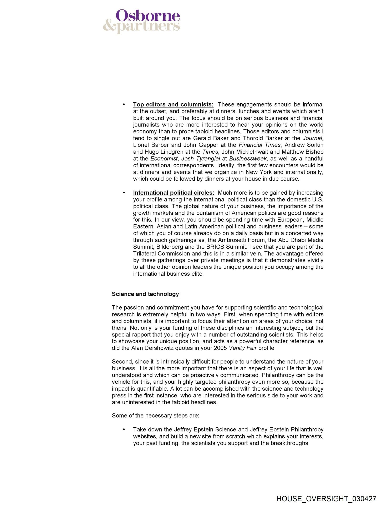 - HOUSE_OVERSIGHT_030427… Sorkin and Hugo Lindgren at the Times, John Micklethwait and Matthew Bishop at the Economist, Josh Tyrangiel at Businessweek, as well …